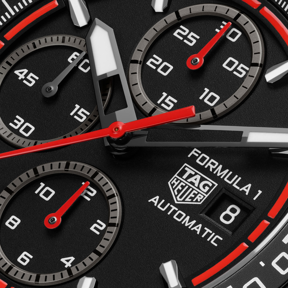 Ispirato all’intensità delle corse automobilistiche, il cronografo TAG Heuer Formula 1 da 44 mm è pensato per veri appassionati di motori. La raffinata cassa in titanio grado 2 e i vivaci accenti rossi fanno di questo segnatempo un’audace dichiarazione di stile, in pista e fuori.