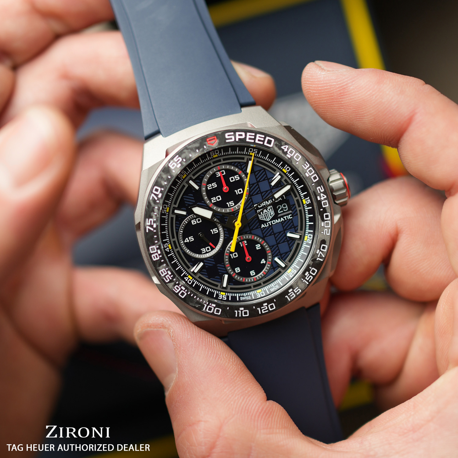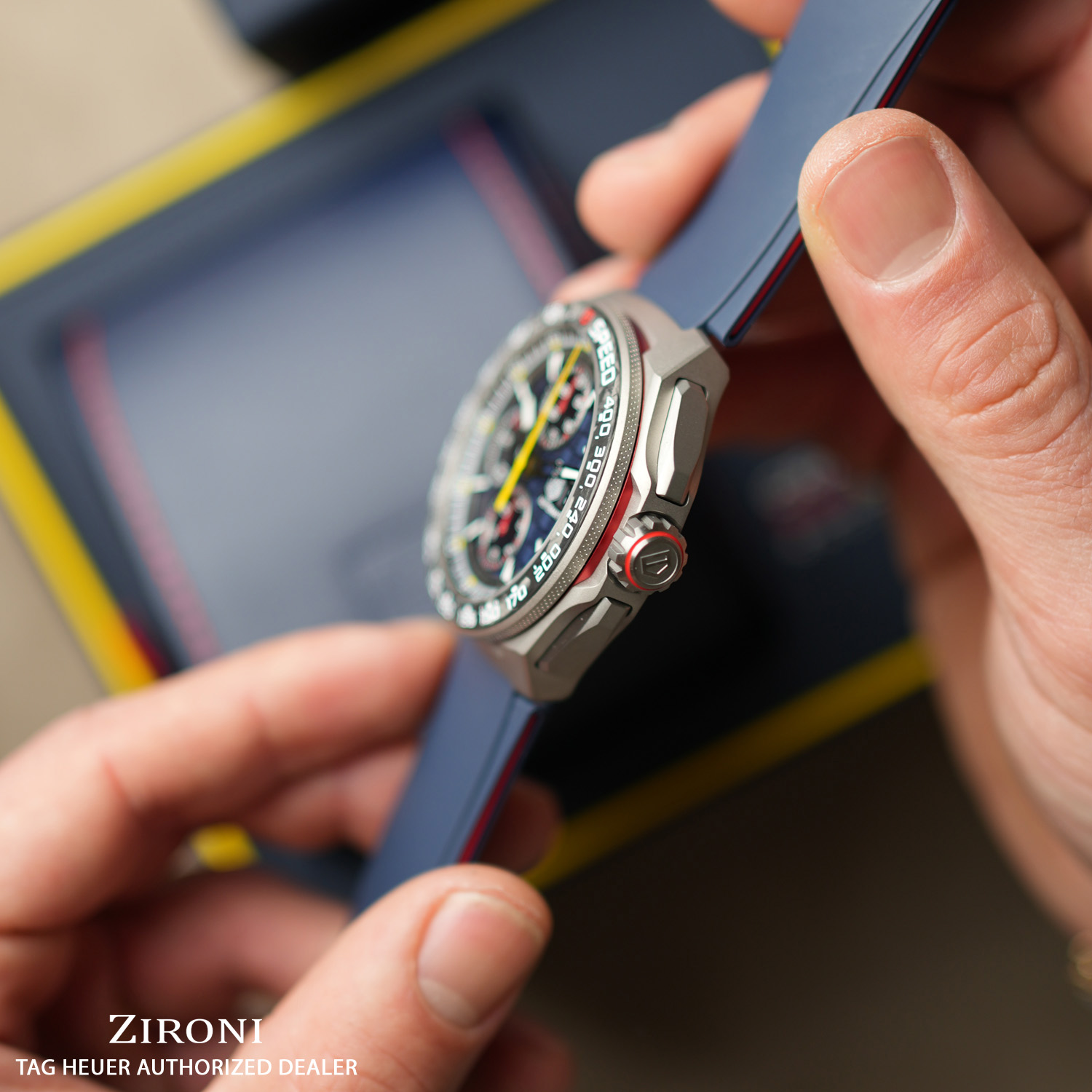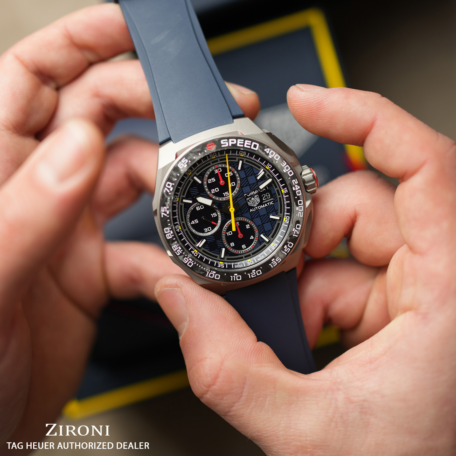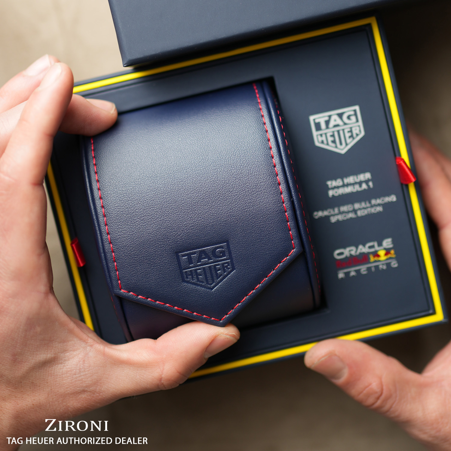 TAG Heuer rende omaggio alla sua passione per il mondo automobilistico con il TAG Heuer Formula 1 Automatic Chronograph x Oracle Red Bull Racing. Questo straordinario segnatempo rende omaggio al team Oracle Red Bull Racing, combinando i suoi iconici colori con materiali all’avanguardia per un orologio eccezionale che si ispira al mondo dei motori.