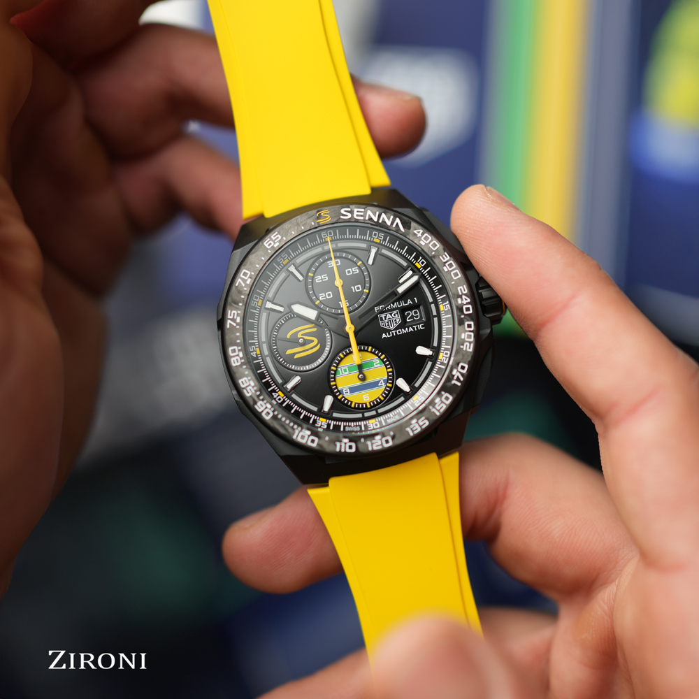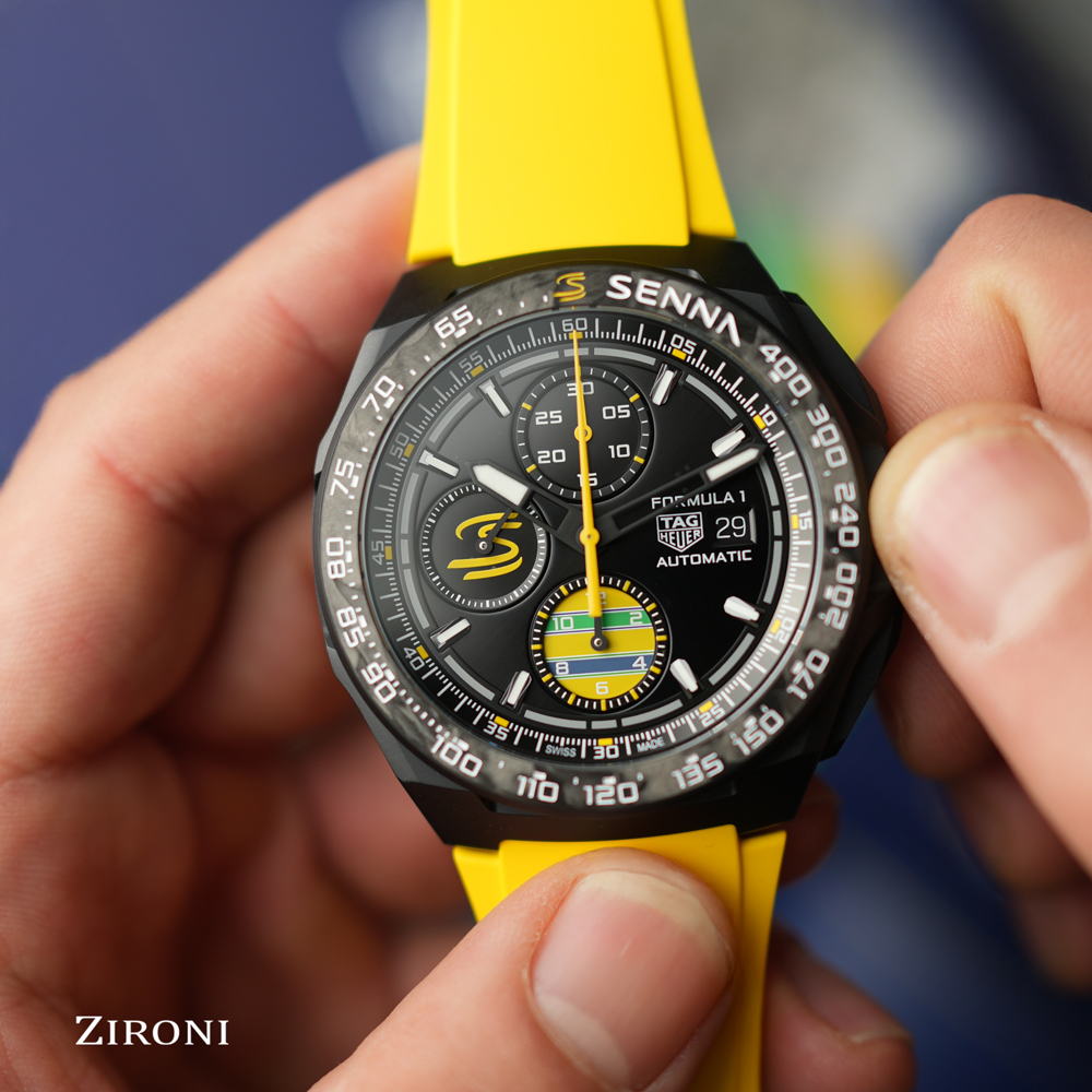 TAG Heuer rende omaggio a una delle sue partnership più iconiche con il TAG Heuer Formula 1 Chronograph x Senna 44mm. Questo audace segnatempo cattura l’audacia e l’incessante ricerca dell’eccellenza, lo spirito e la passione per le corse di Ayrton Senna attraverso un design unico e l’uso di materiali di alta qualità come il titanio con rivestimento in DLC nero e la lunetta in carbonio forgiato.