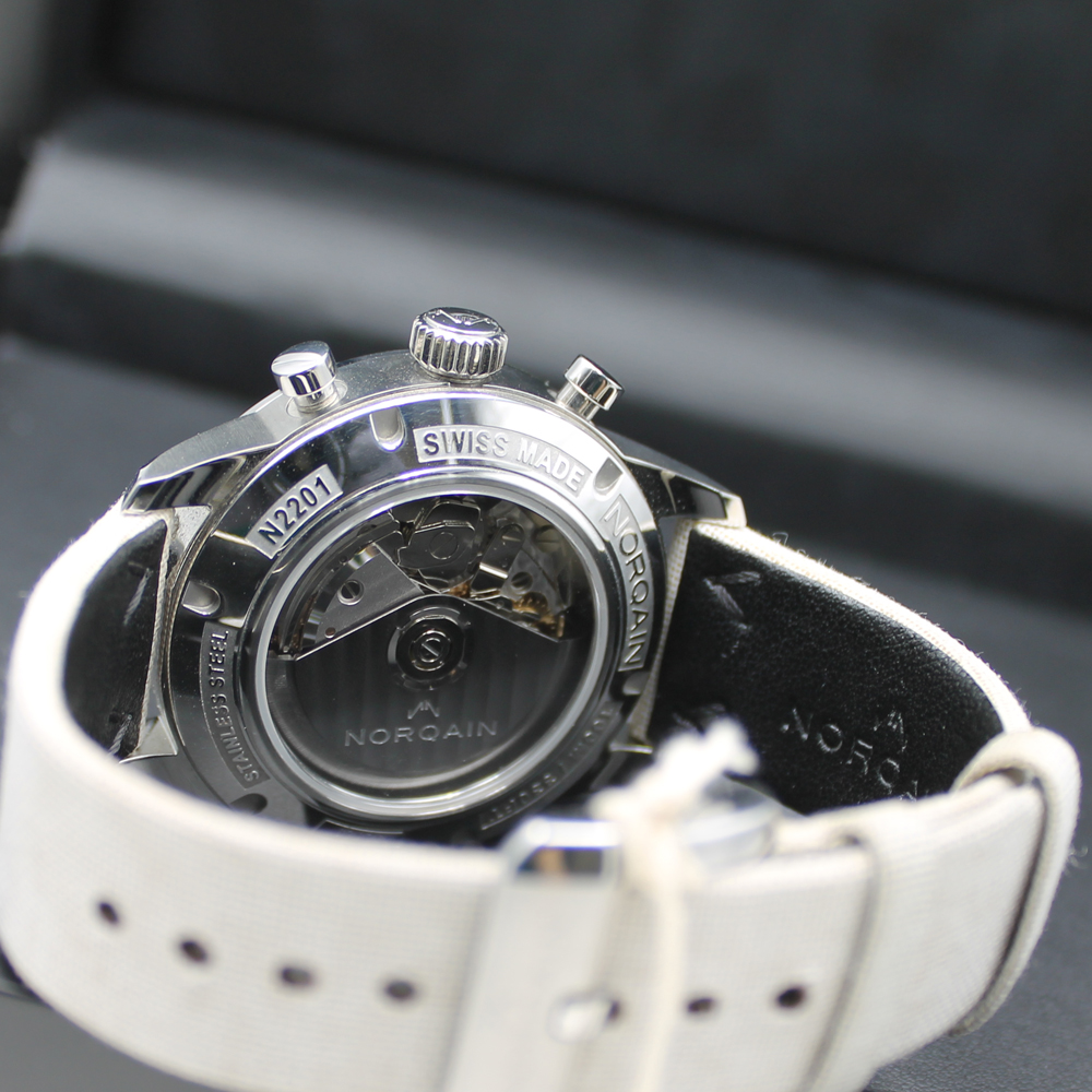 La collezione Freedom è fortemente legata all'apprezzamento dei grandi spazi aperti che attraversa le generazioni. Il design di ispirazione vintage degli orologi Freedom presenta vetro zaffiro bombato, cinturini vintage con le esclusive "cuciture NORQAIN" e bellissimi quadranti che evocano l'estetica degli anni '60. La famiglia NORQAIN Freedom è stata creata per i vagabondi e gli esploratori che amano la libertà della vita all'aria aperta.