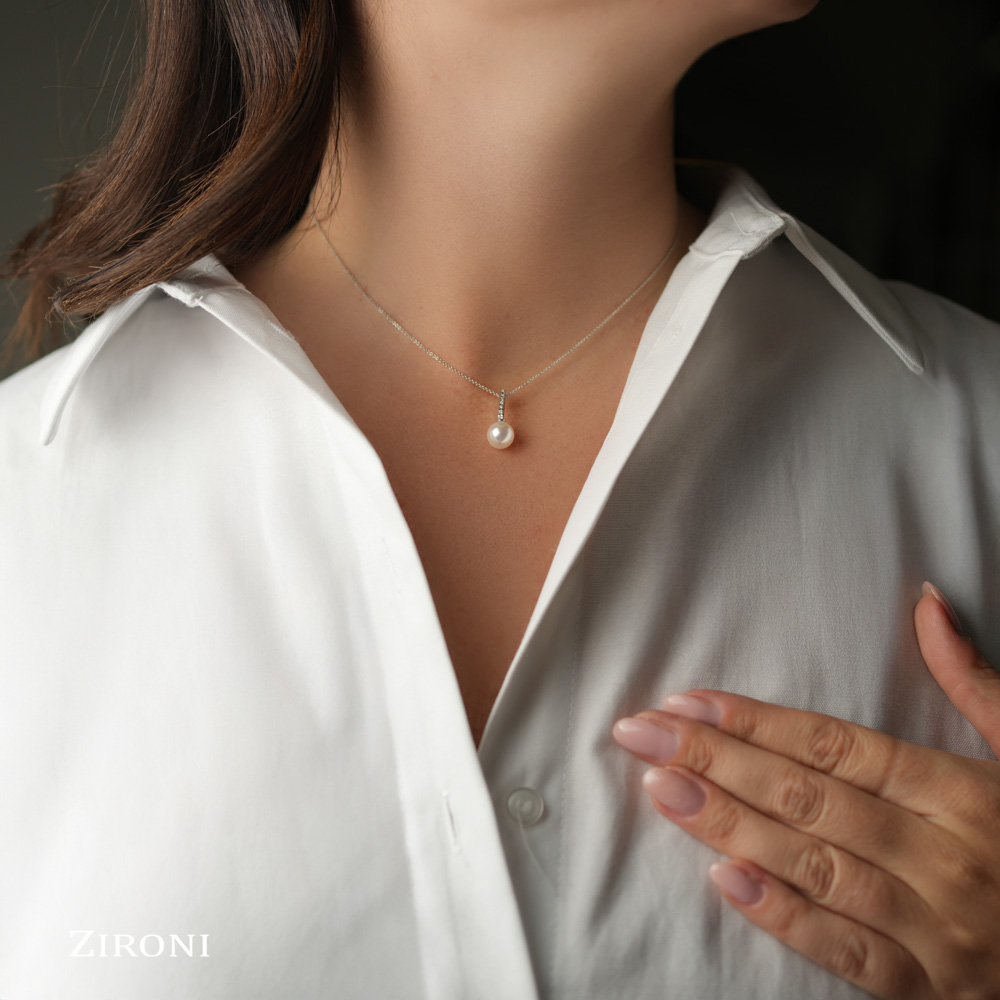Girocollo in oro bianco 18K con perla akoya (8/8,5 mm) e diamanti taglio brillante (ct 0,035-G- VS)