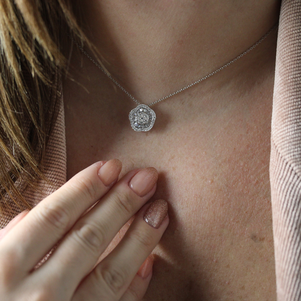Girocollo fantasia in oro bianco 18K con diamanti taglio brillante e taglio baguette (0,50 ct - G/H - SI)