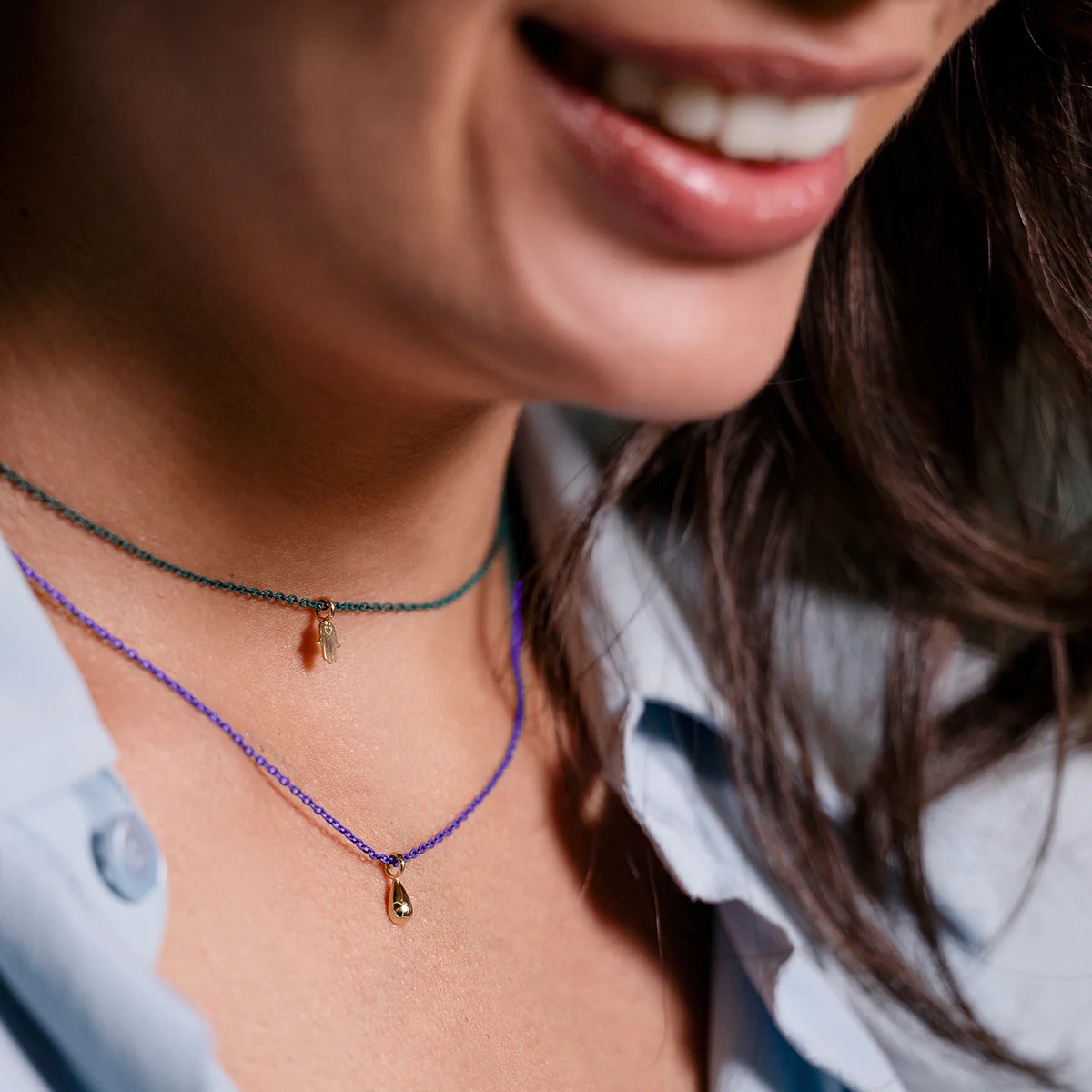Girocollo con soggetto realizzato in oro 18 KT e rifinito a mano e catena verniciata su base argento925