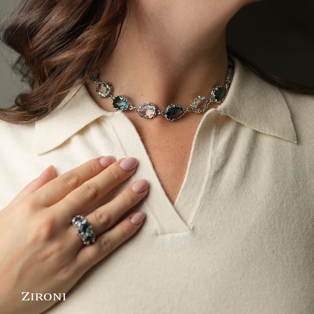 Girocollo in argento lavorato a mano con cristalli idrotermali