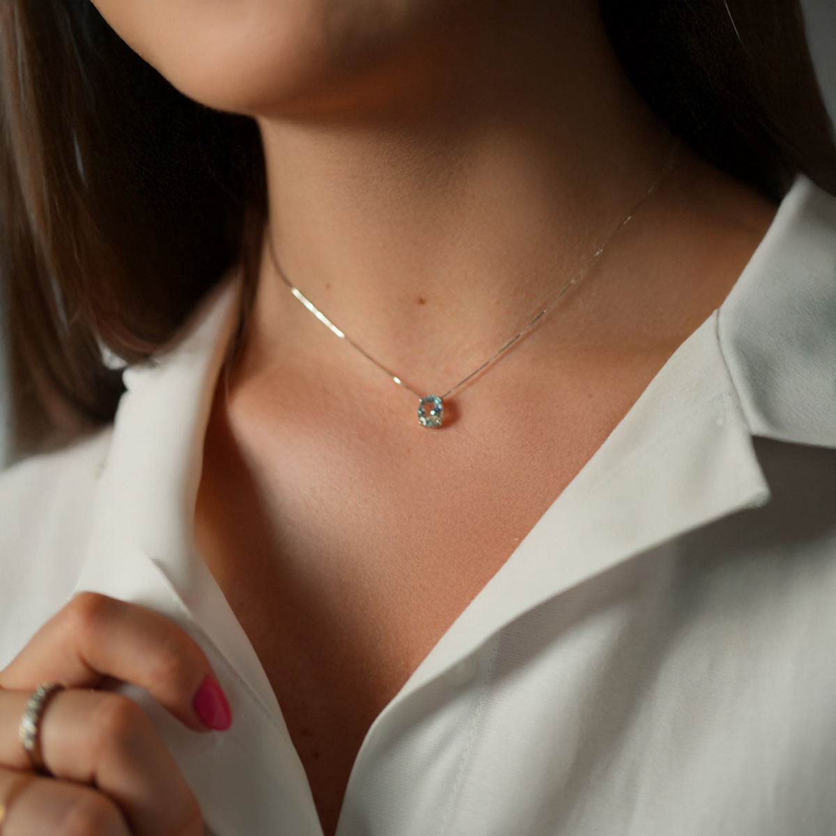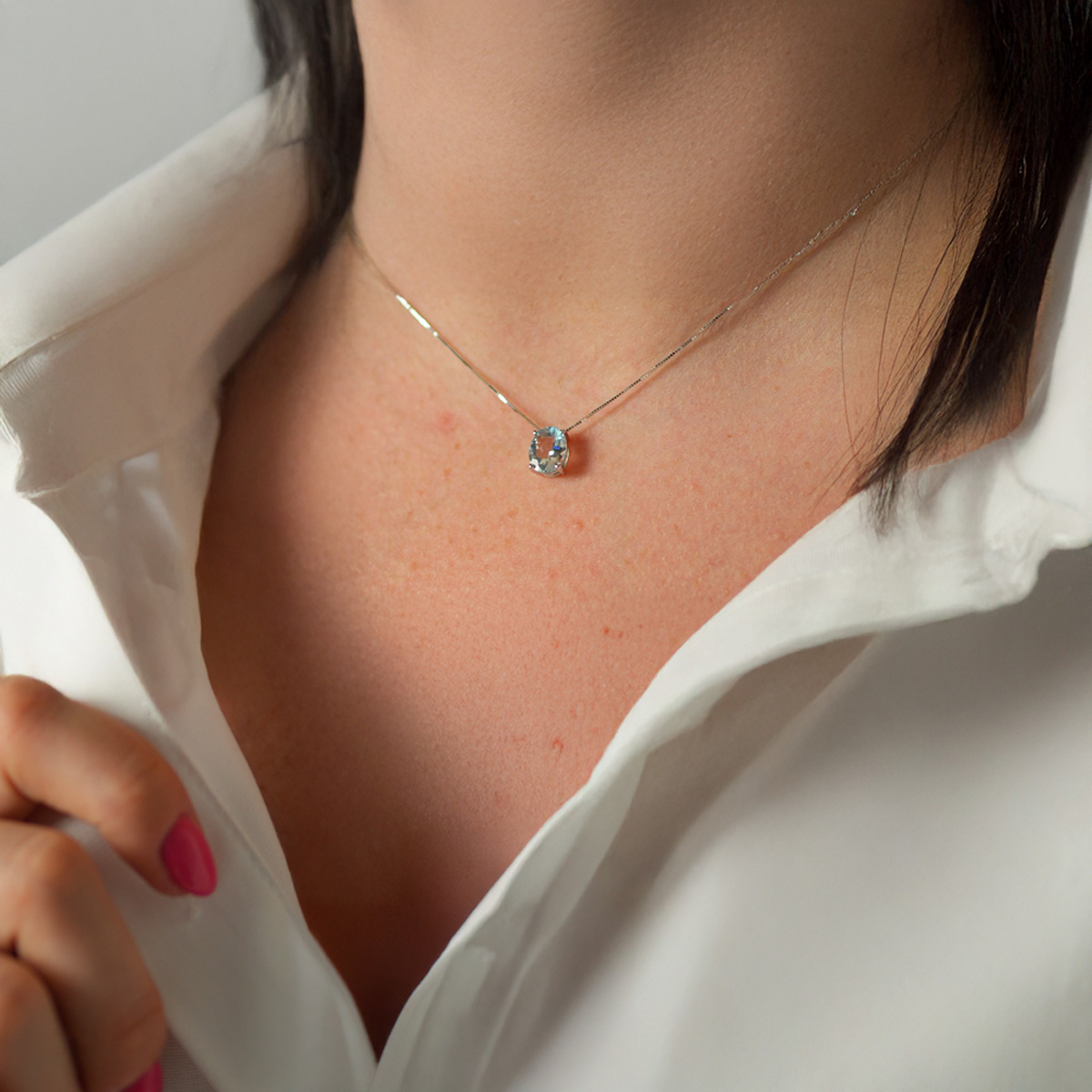 Girocollo in oro bianco 18K con acquamarina taglio ovale (ct 1,47)