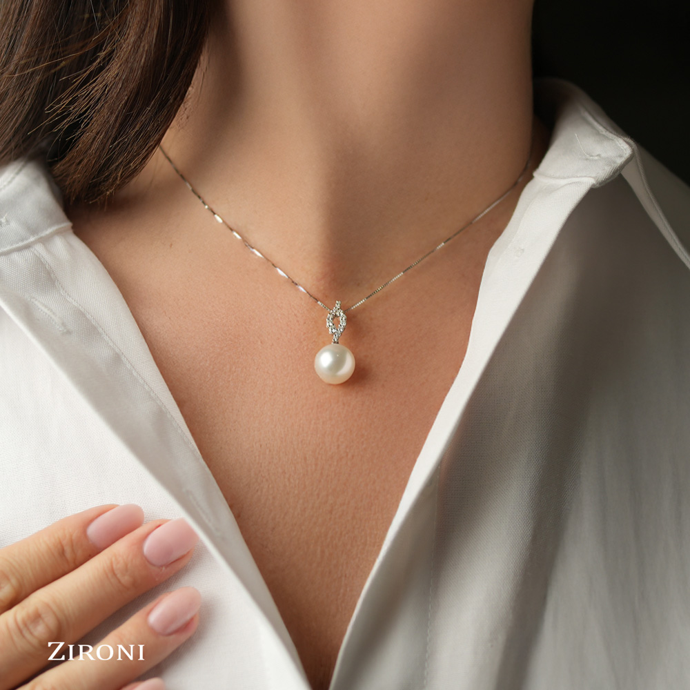 Girocollo in oro bianco 18K con con perla Australiana (11/12 mm) e diamanti tagio brillante (0,29 ct-G-SI)