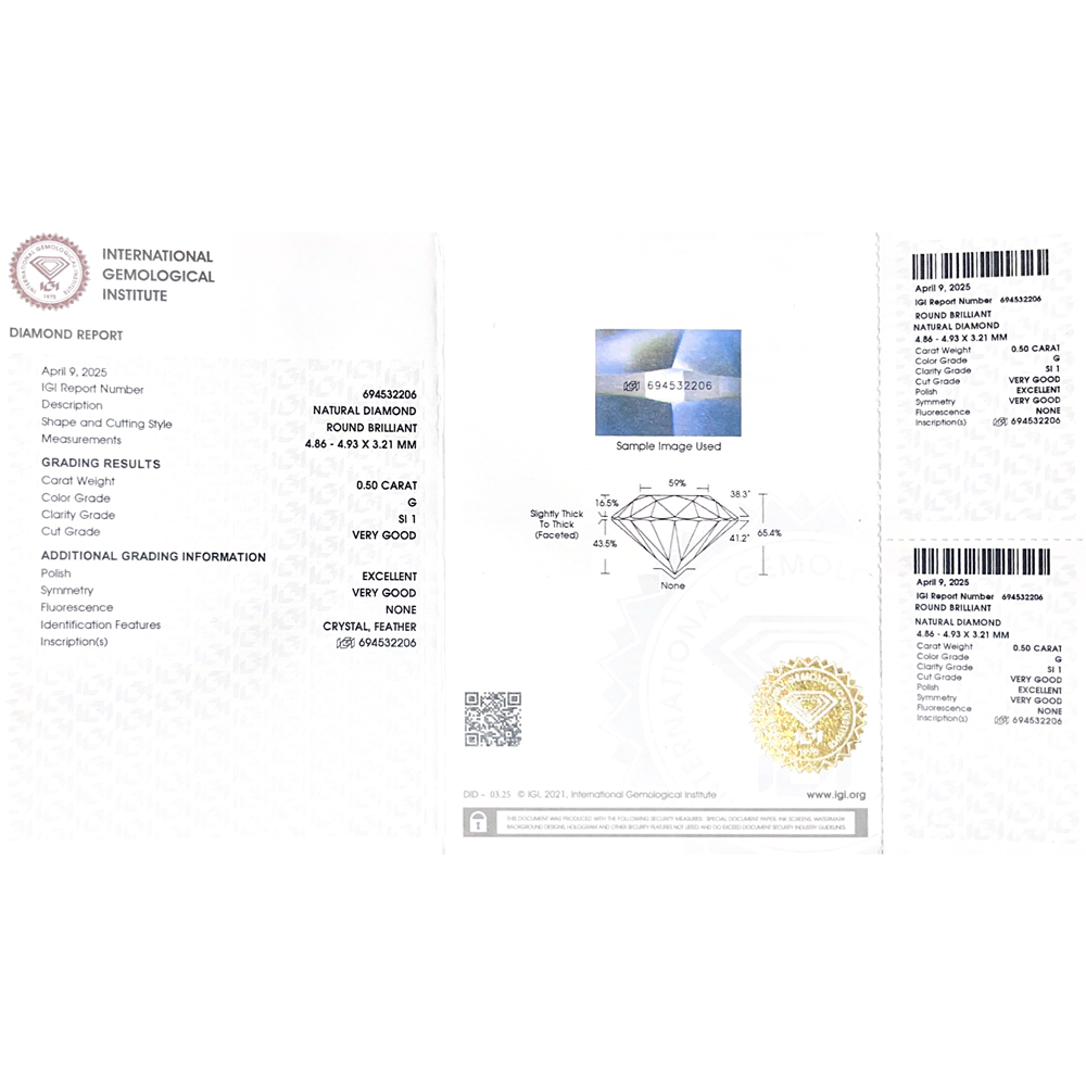 Girocollo punto luce in oro bianco 18K con diamante taglio brillante (ct 0,50- G - SI1) con certificato IGI