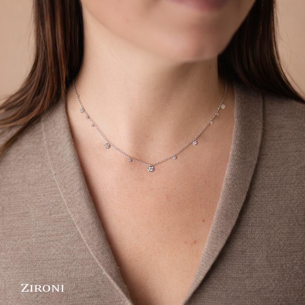 Girocollo in oro bianco 18K e 21 diamanti pendenti taglio brillante (0,90 ct - F - SI) - lunghezza 42 cm