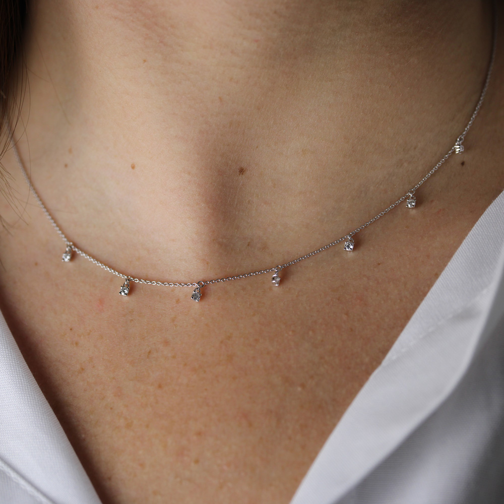Girocollo in oro bianco 18K con 7 diamanti pendenti taglio brillante (ct 0.30 - G - SI)
