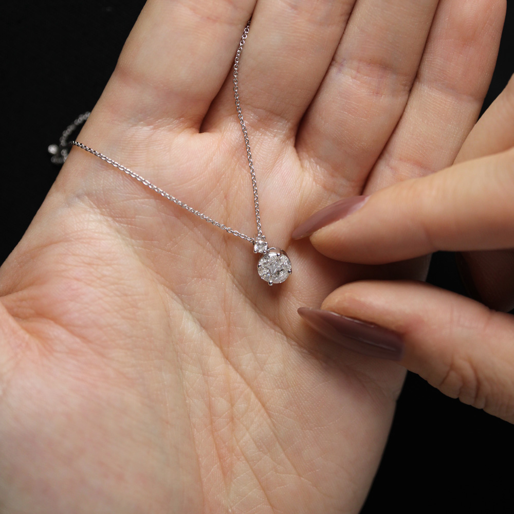 Girocollo in oro bianco 18K con diamanti taglio brillante, marquise e quadrato (ct 0,36 - G - VS)