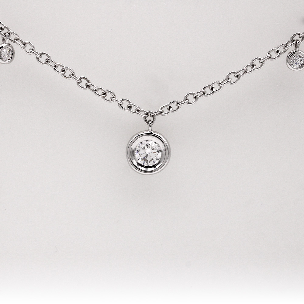 Girocollo in oro bianco 18K e 21 diamanti pendenti taglio brillante (0,90 ct - F - SI) - lunghezza 42 cm