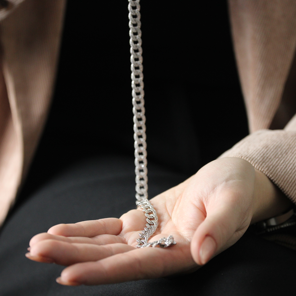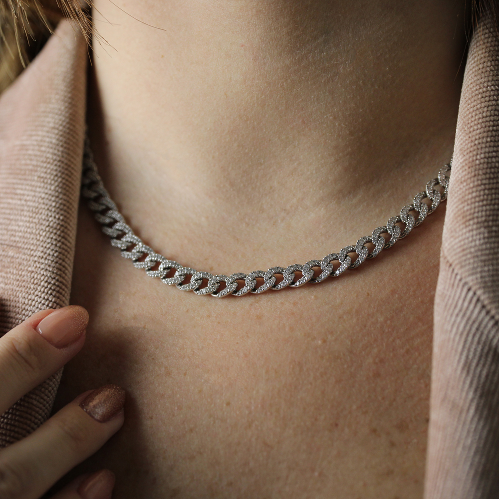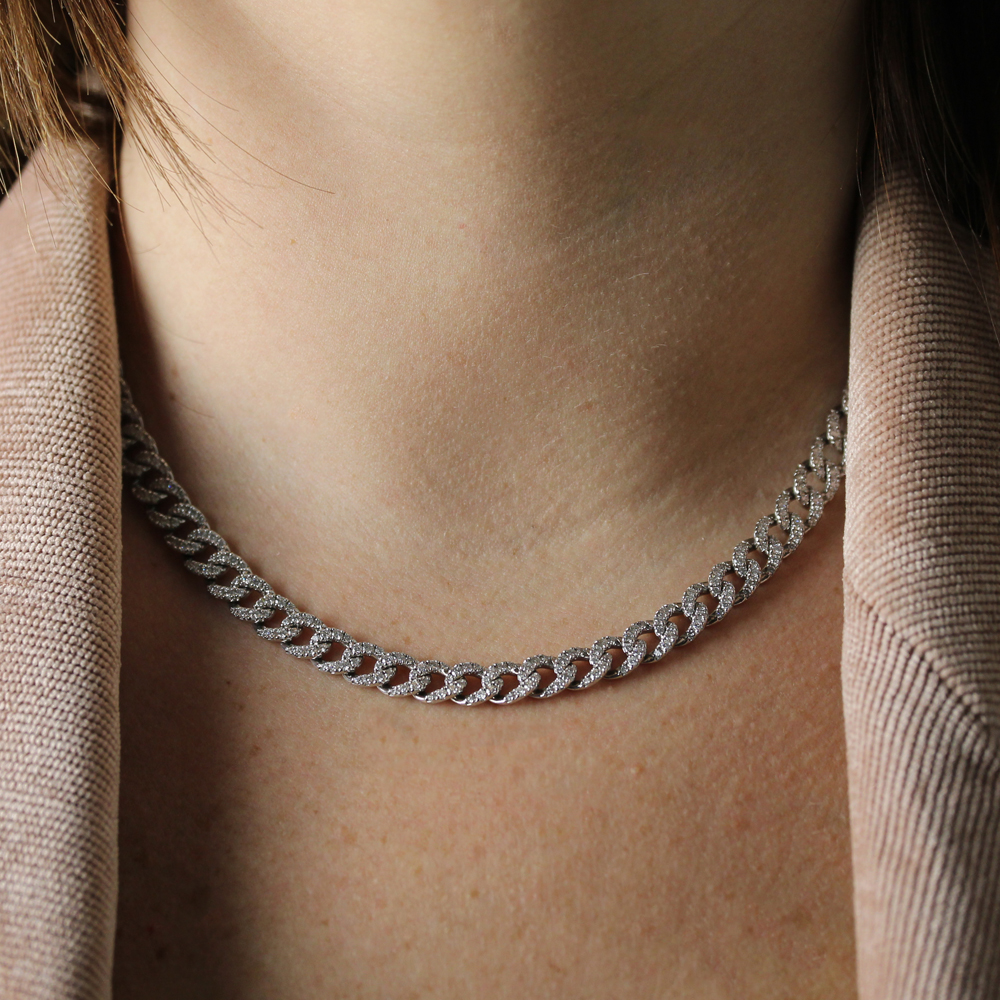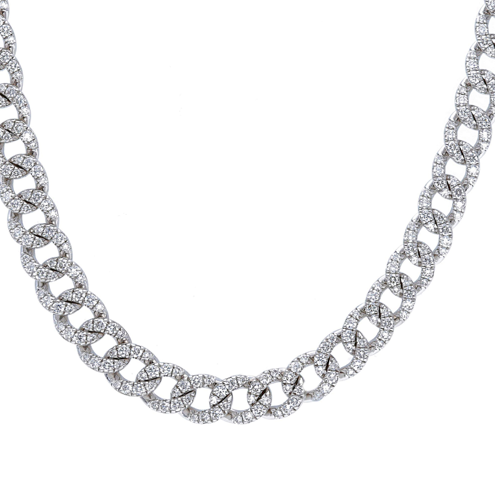 Girocollo groumette in oro bianco 18K con diamanti taglio brillante (ct 8.40 - G - SI) - lunghezza 42 cm