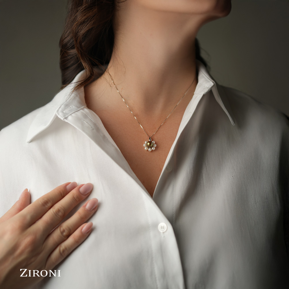Girocollo "flower" in oro bianco 18K con perle di acqua dolce