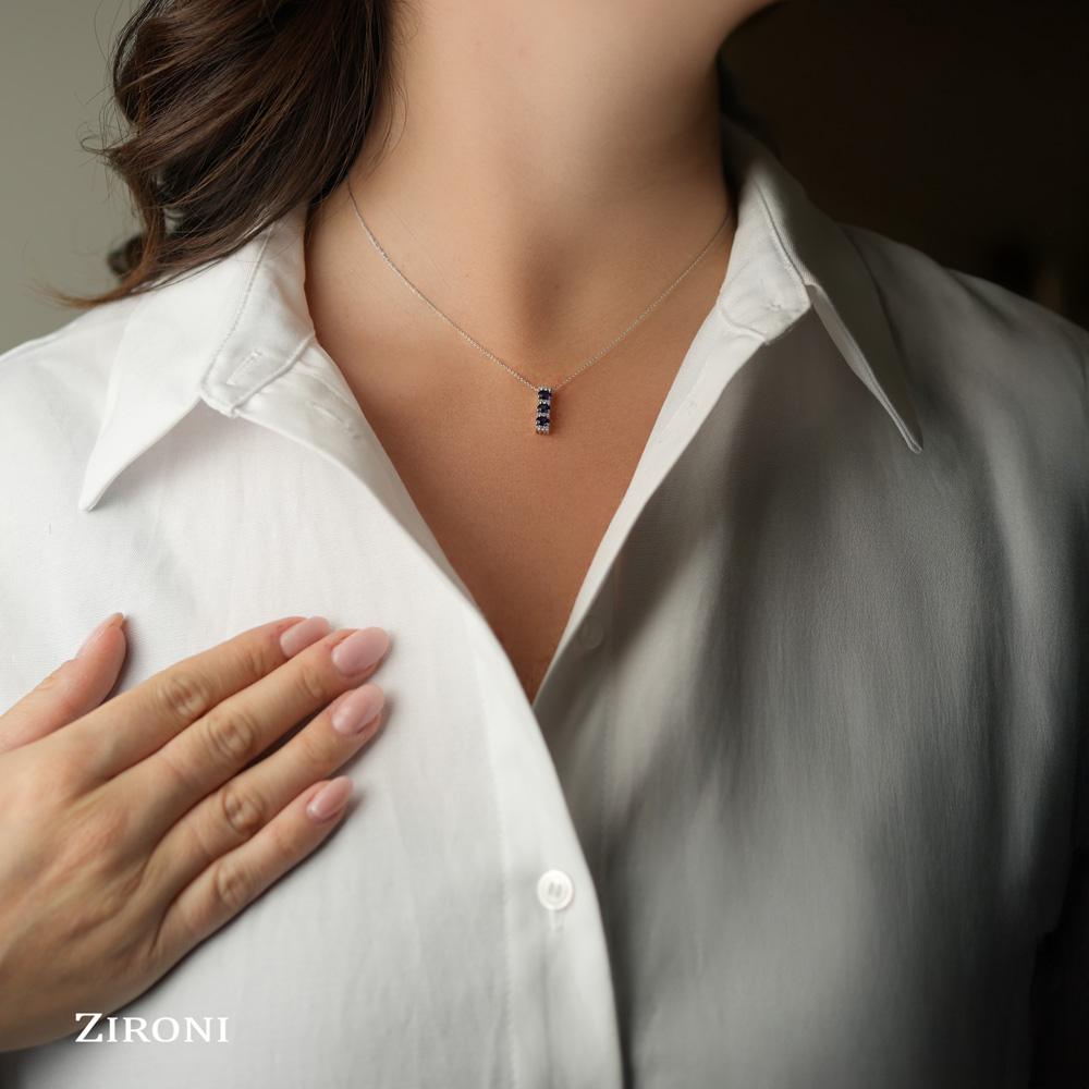 Girocollo in oro bianco con trilogy di zaffiri (ct 0,38) e diamanti (ct 0.11)
