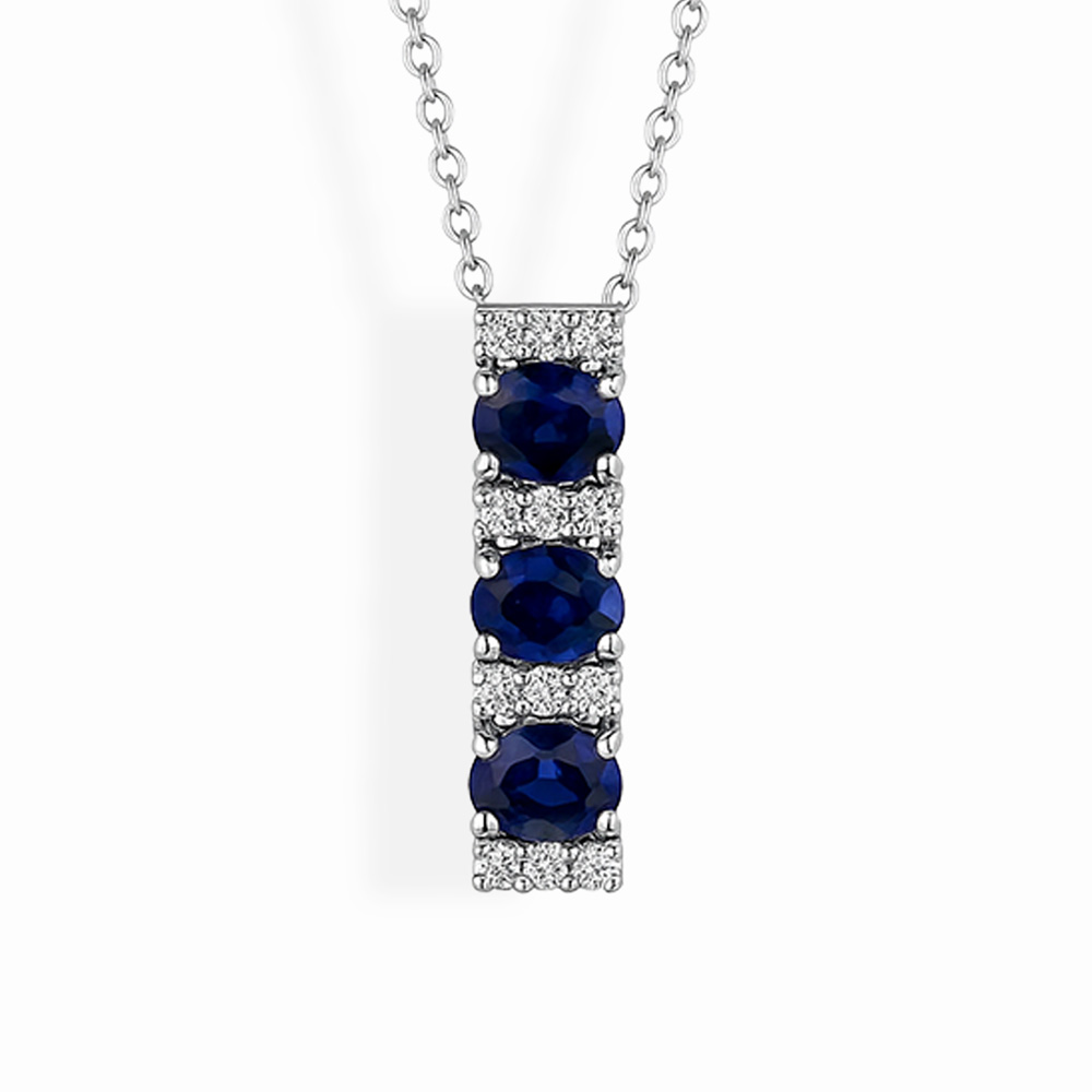 Girocollo in oro bianco 18K con trilogy di zaffiri taglio ovale (ct 0,38) e diamanti taglio brillante (ct 0.11 - G/H - SI)