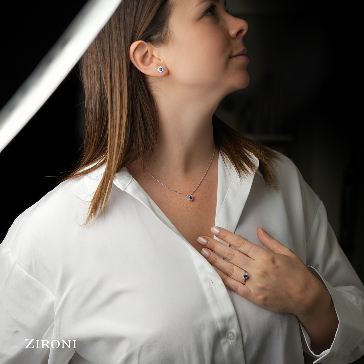 Girocollo in oro bianco con zaffiro (ct 0,42) e diamanti (ct 0,12)