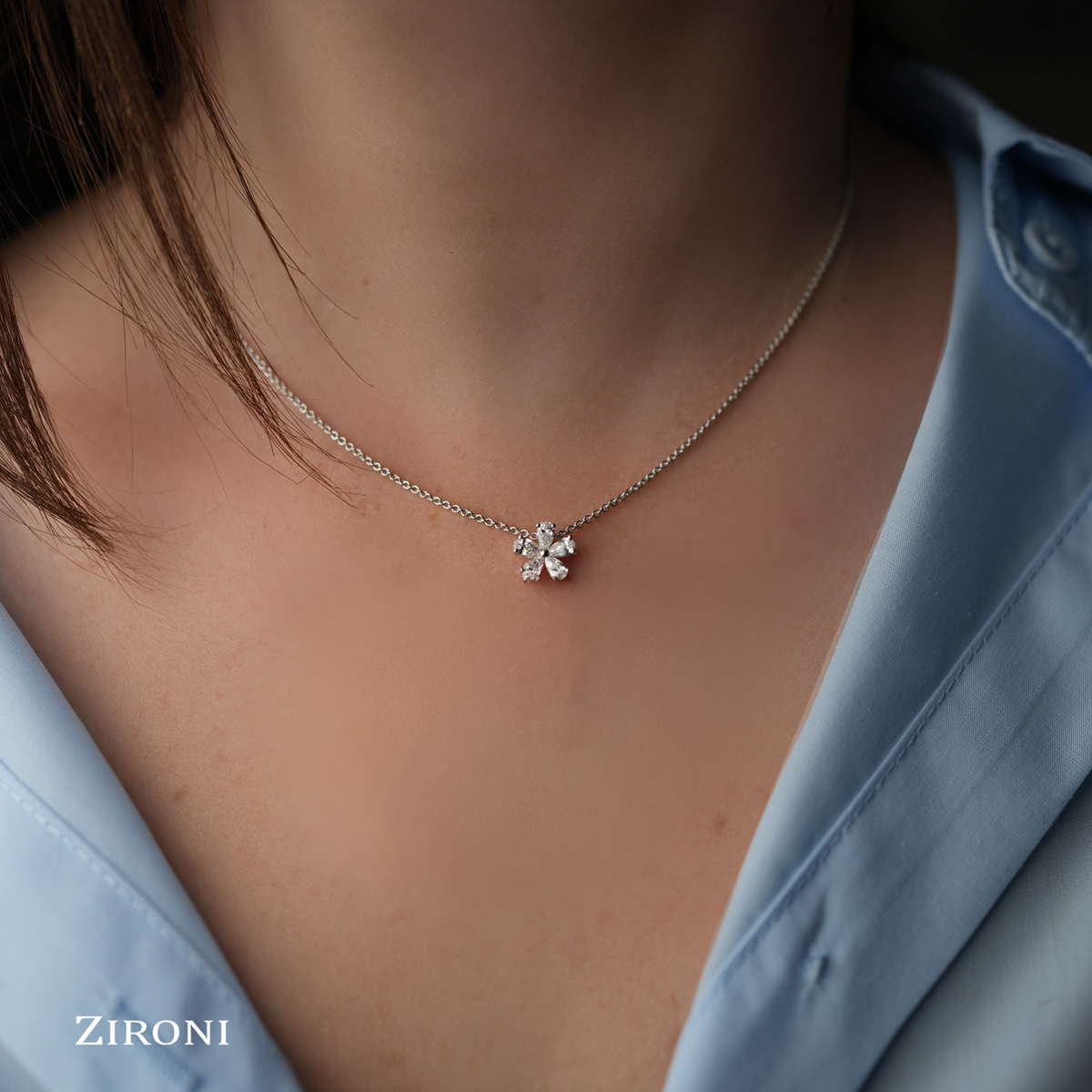 Girocollo in oro bianco 18K e fiore con 5 diamanti taglio goccia (0,60 ct - F - VS)