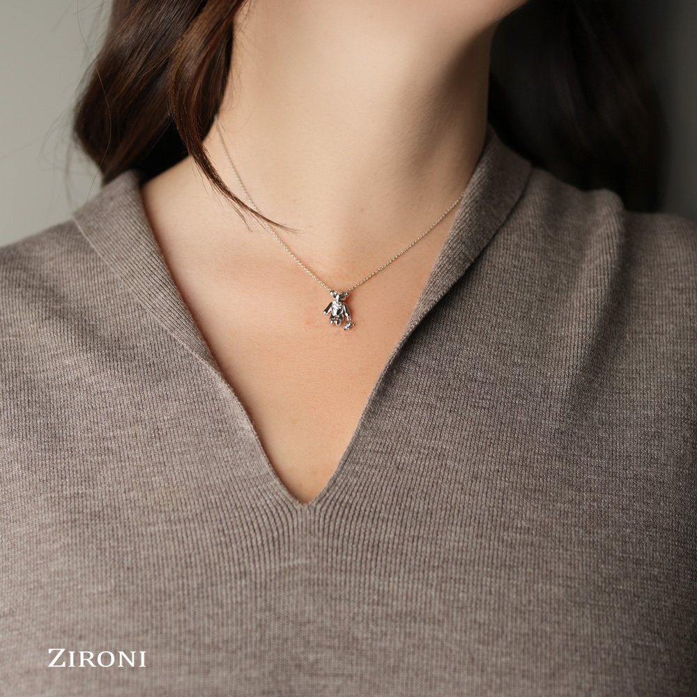 Girocollo in oro bianco 18K e orsetto movibile pendente con diamanti taglio brillante (ct 0,07 - G/H - SI)