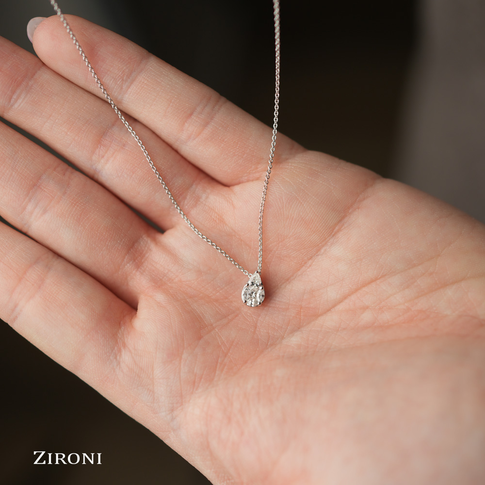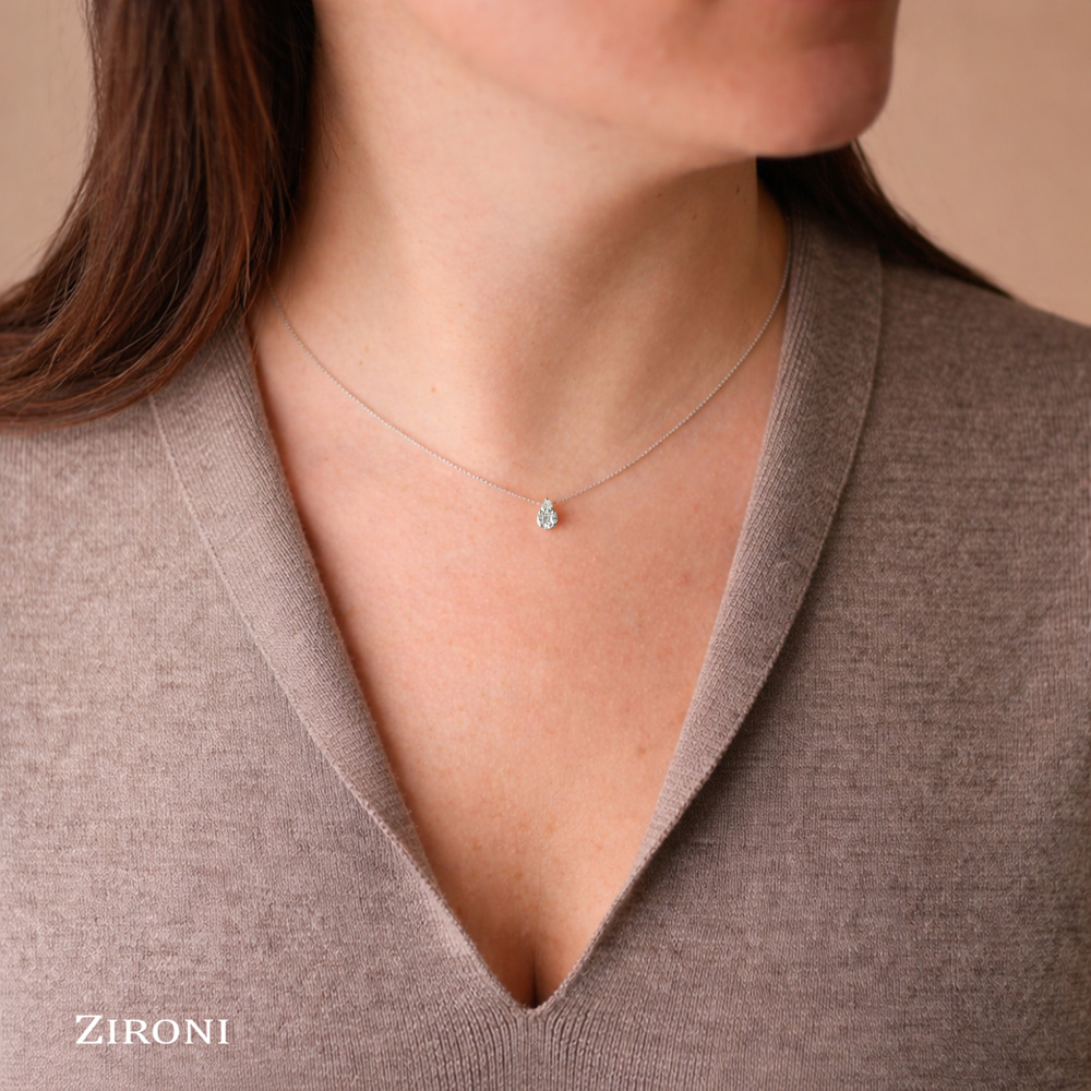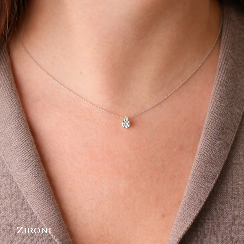 Girocollo in oro bianco 18K e pendente con diamante taglio goccia (0,12 ct), 3 diamanti taglio navette (0,10 ct) e diamante taglio princesse (0,06 ct) - caratura totale (0,28 ct - G - VS)