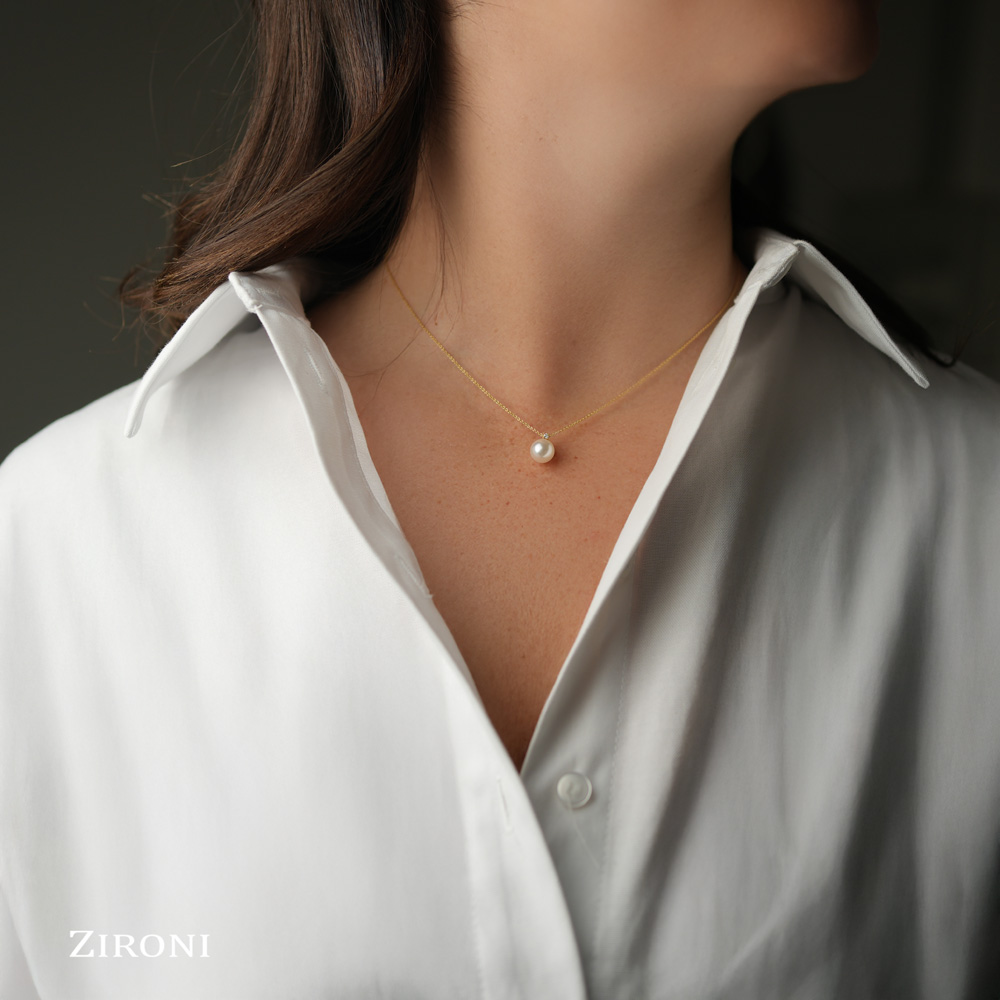 Girocollo in oro giallo con perla Akoya (7.5/8 mm) e diamanti (ct 0.02)