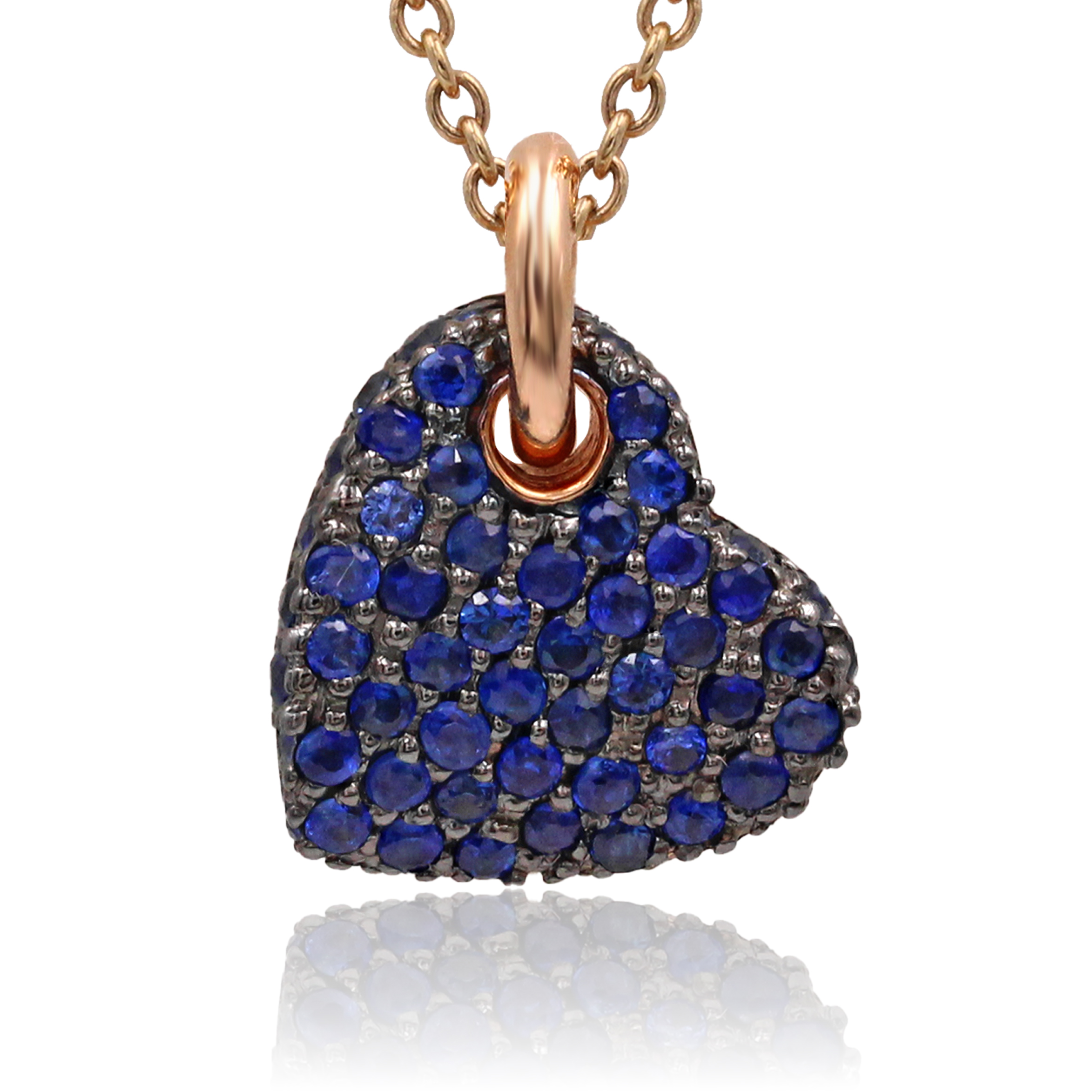 Girocollo in oro rosa 18K con ciondolo cuore con zaffiri taglio brillante (ct 0,30)