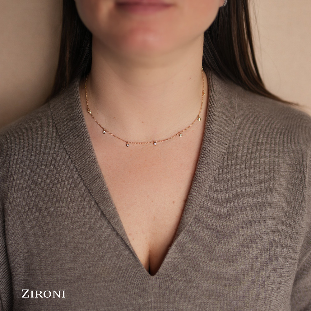 Girocollo in oro rosa 18K con 9 diamanti pendenti taglio brillante (ct 0,26 - F -SI) - lunghezza fissa 42 cm