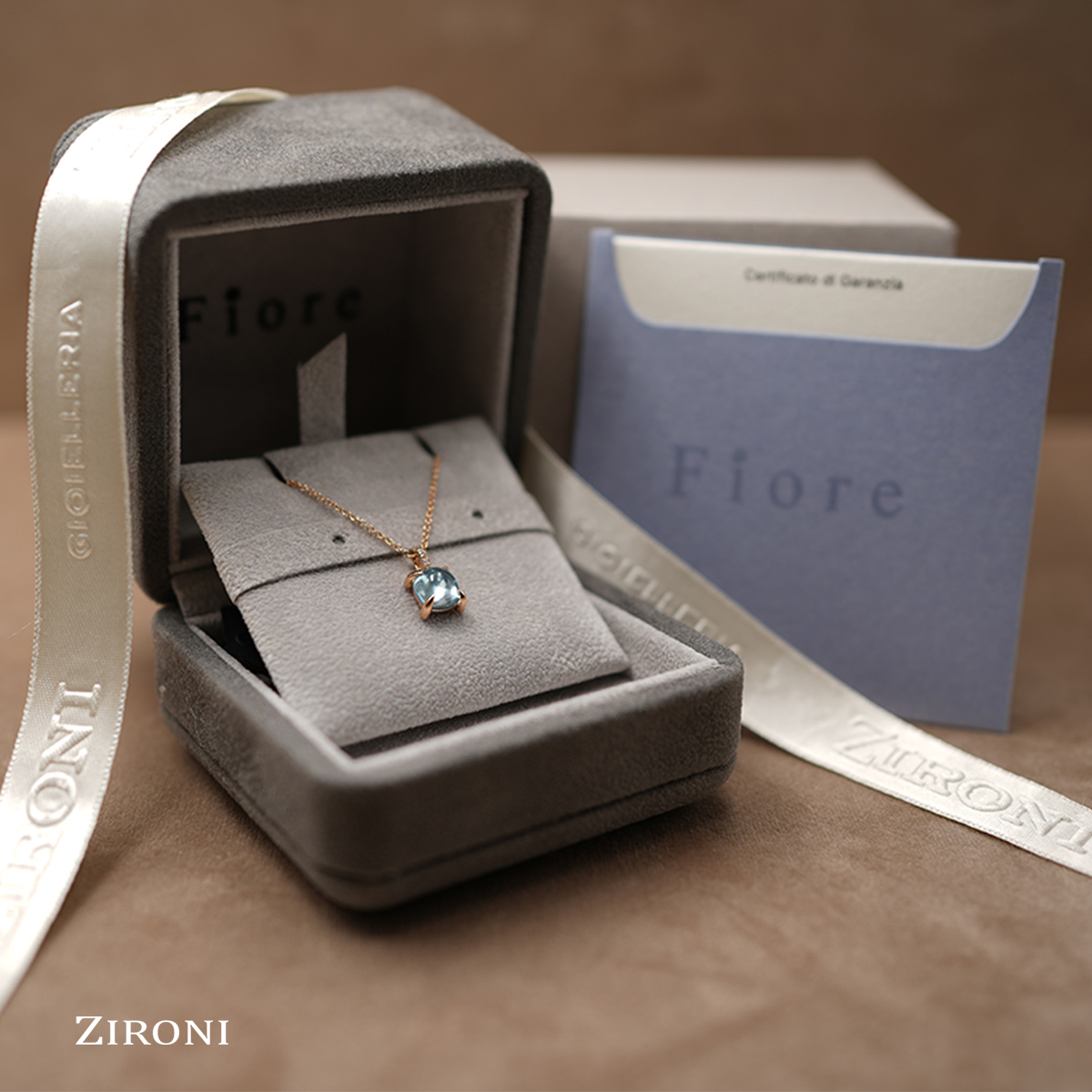 Girocollo in oro rosa con topazio blu sky e diamanti - mod. piccolo