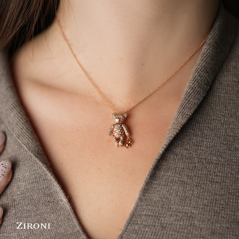 Girocollo in oro rosa 18K e orsetto movibile con diamanti brown taglio brillante (ct 1,95) e diamanti taglio brillante (ct 0,01 - G/H - SI)
