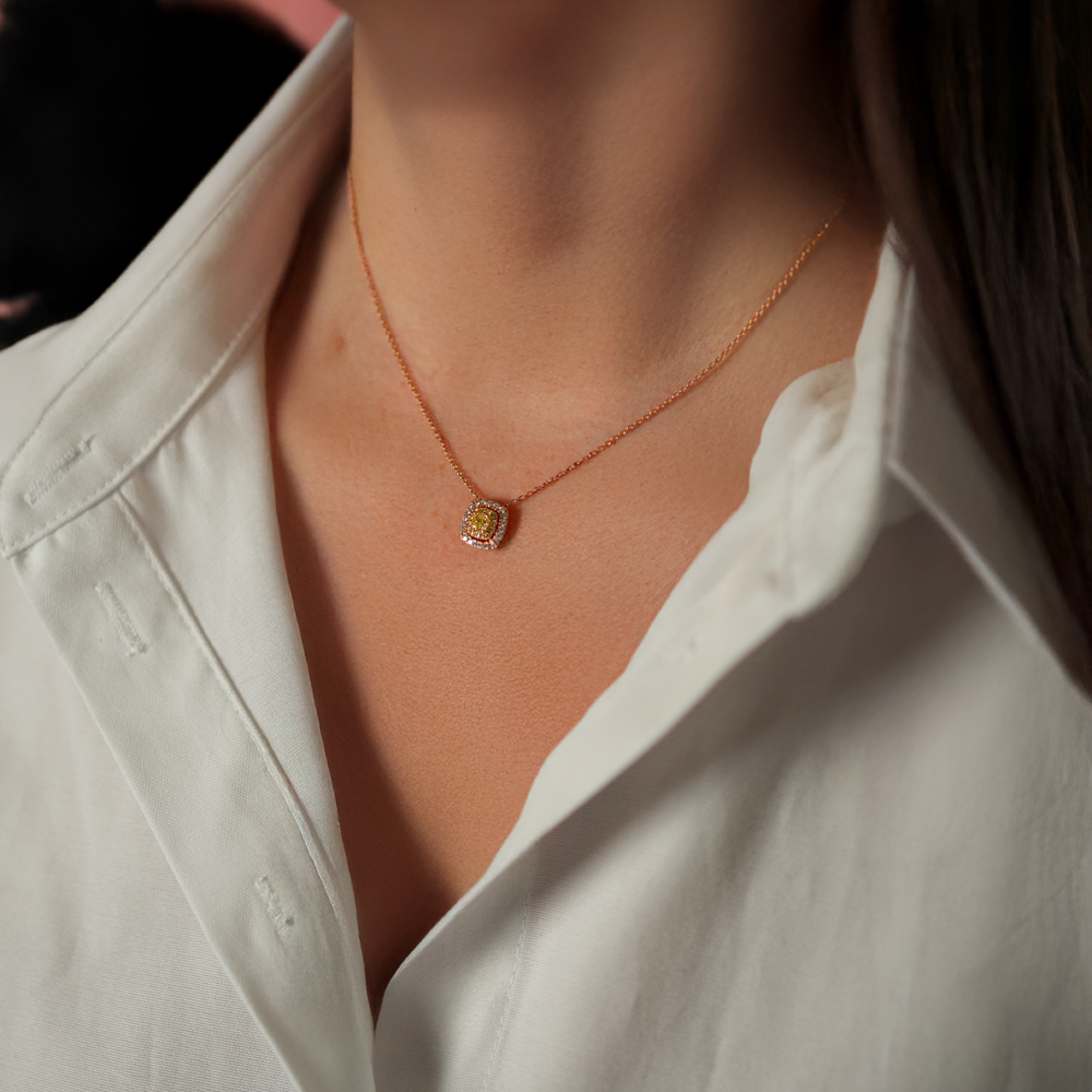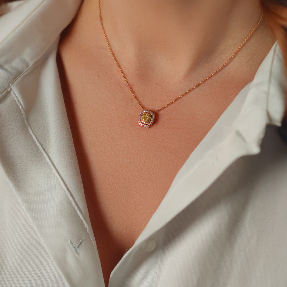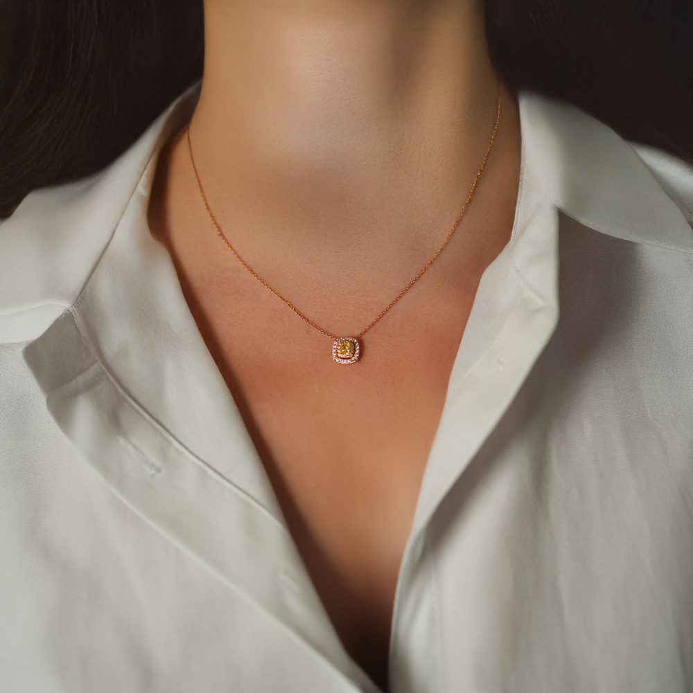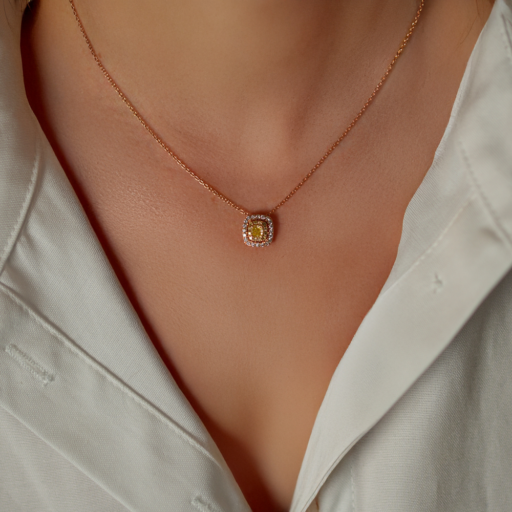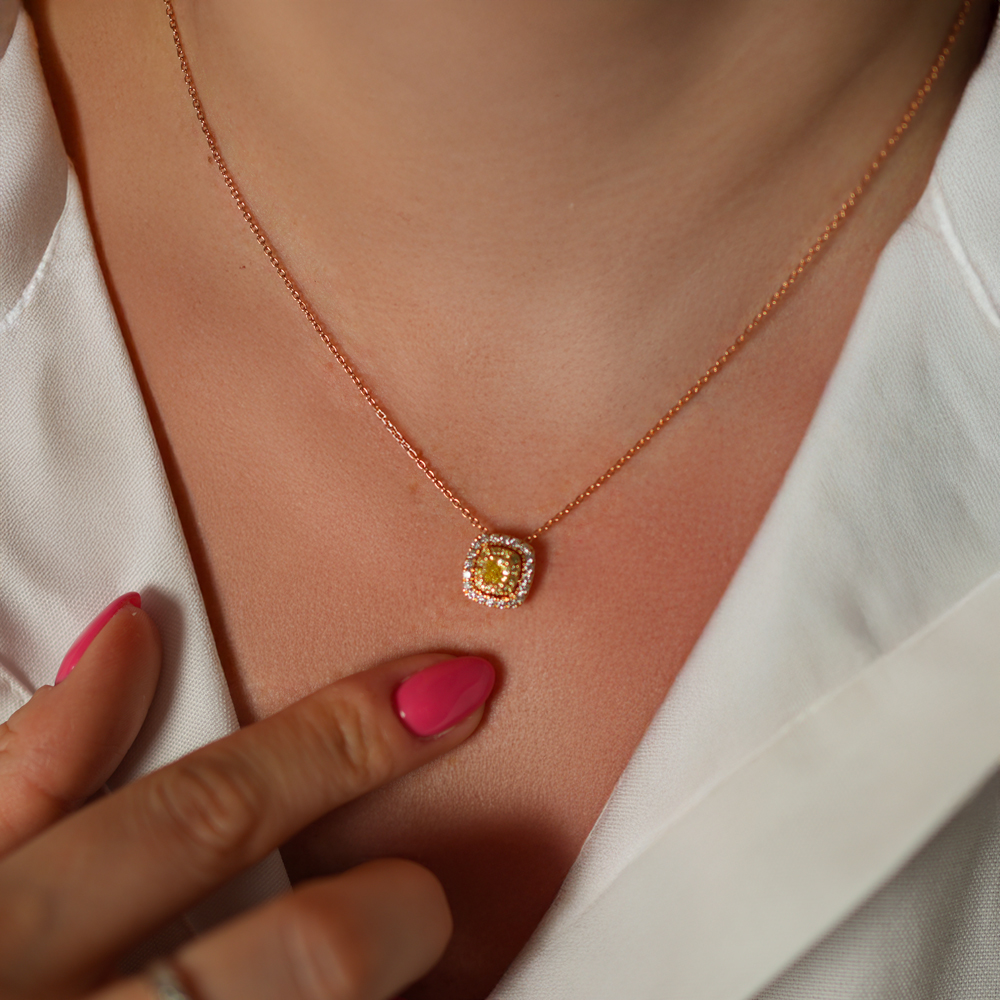 Girocollo in oro rosa 18K con diamante Fancy centrale taglio ottagonale (ct 0,45) e contorno di diamanti taglio brillante (ct 0,22 - G/H - SI)