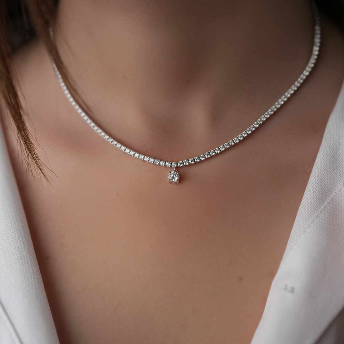 Girocollo tennis in oro bianco con pendente di diamanti (ct 3,80) - 42 cm