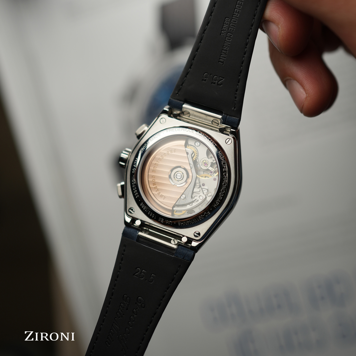 Molti dettagli progettati appositamente rendono il segnatempo Highlife Chronograph Automatic raffinato e inconfondibile. Rispettando le peculiarità tipiche dell’alta orologeria di Ginevra, questo orologio presenta un’alternanza di finiture lucide satinate e spazzolate sulla carrure, il profilo e la lunetta. Vengono introdotti due pulsanti a ore 2 e ore 4 che innescano l’avvio, l’arresto e l’azzeramento del cronografo. Il loro profilo è leggermente inclinato di alcuni gradi per meglio integrarsi al profilo della cassa. I contatori del cronografo sono dotati di un réhaut incurvato verso l’interno, offrendo una lettura più precisa delle indicazioni del cronografo. La raffinata graduazione del réhaut permette di leggere il quinto di secondo. Il fondello presenta un vetro zaffiro antiriflesso per ammirare il movimento automatico e il suo modulo cronografico, in particolare la ruota a colonne situata a ore 3.