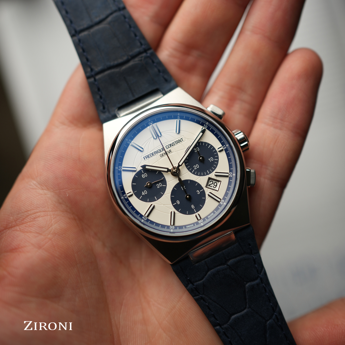 Complicazioni emblematiche dell’orologeria: l’orologio Highlife Automatic Chronograph monta il movimento FC-391 e offre una riserva di carica di 60 ore.