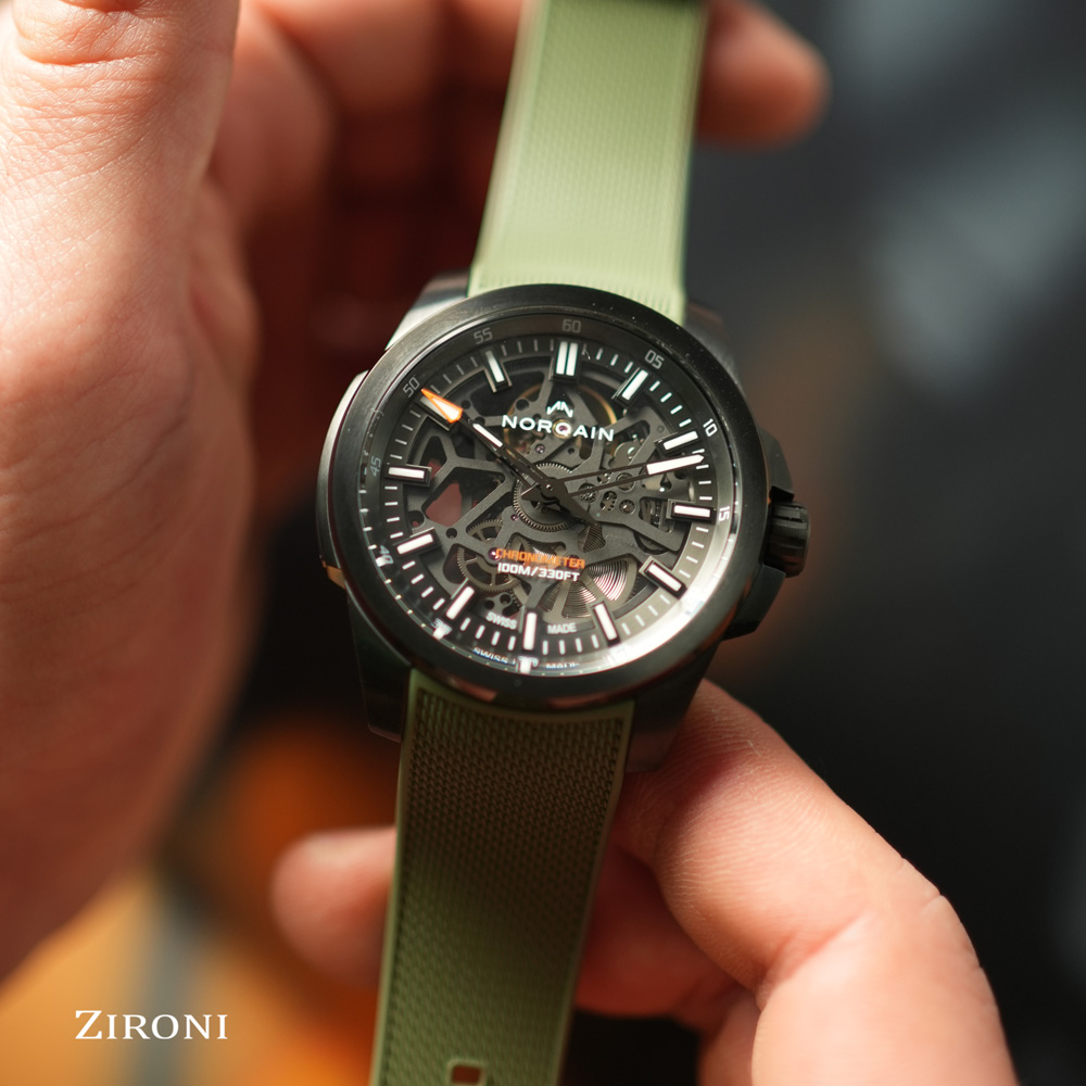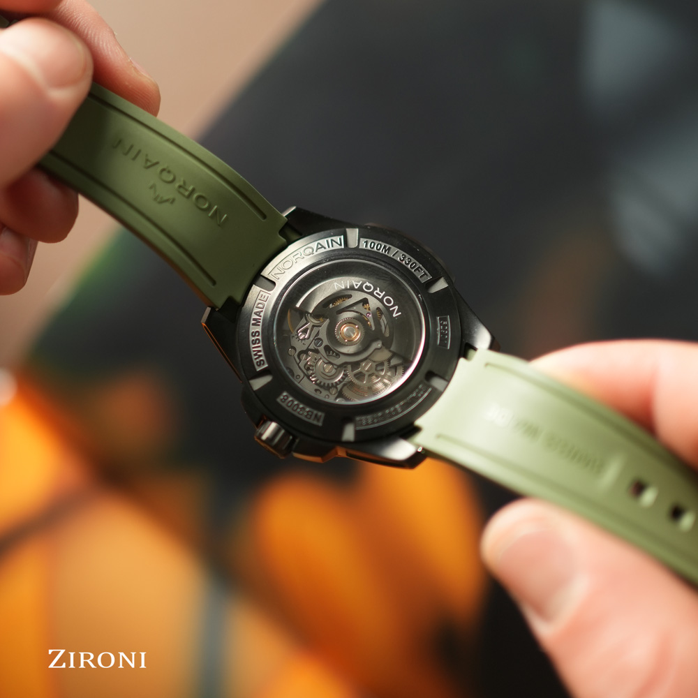 Realizzato con il nostro materiale in fibra di carbonio NORTEQ brevettato, ultra resistente e ultraleggero, il Wild ONE è l'orologio sportivo ad alte prestazioni per eccellenza. Sei volte più leggero dell'acciaio e 3,5 volte più leggero del titanio, questo Wild ONE è stato progettato in collaborazione con Jean-Claude Biver, il team NORQAIN e i migliori fornitori svizzeri