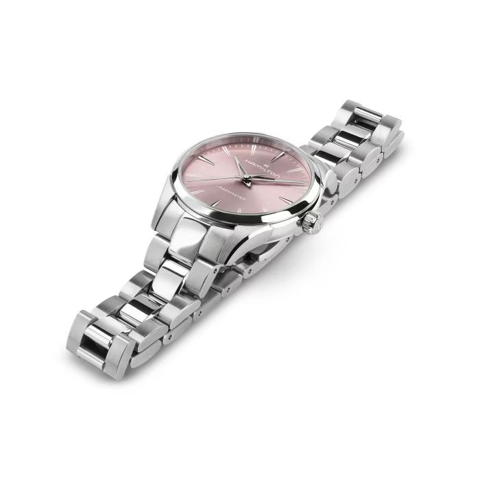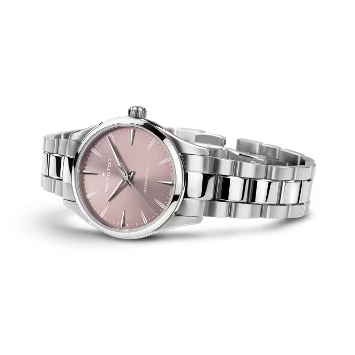 Elegante e moderno, il Jazzmaster Quartz 32 mm si distingue per un quadrante rosa cipria spazzolato con finitura soleil, impreziosito da sfere “dauphine” scheletrate, che conferiscono un tocco moderno allo stile tradizionale. La cassa ultrasottile e i dettagli lucidi e spazzolati creano una silhouette elegante. Un orologio classico ed elegante che unisce energia vitale e raffinatezza senza tempo.