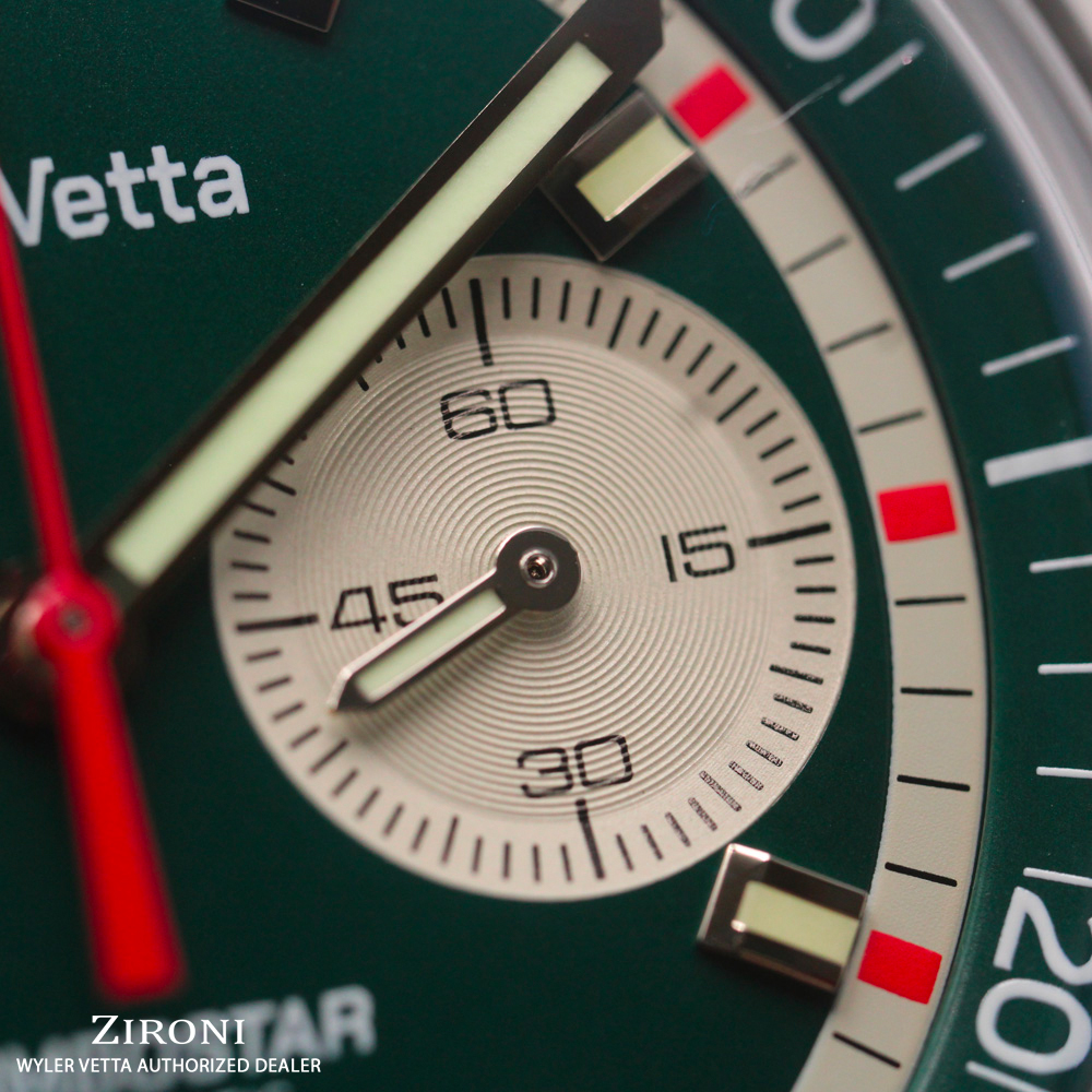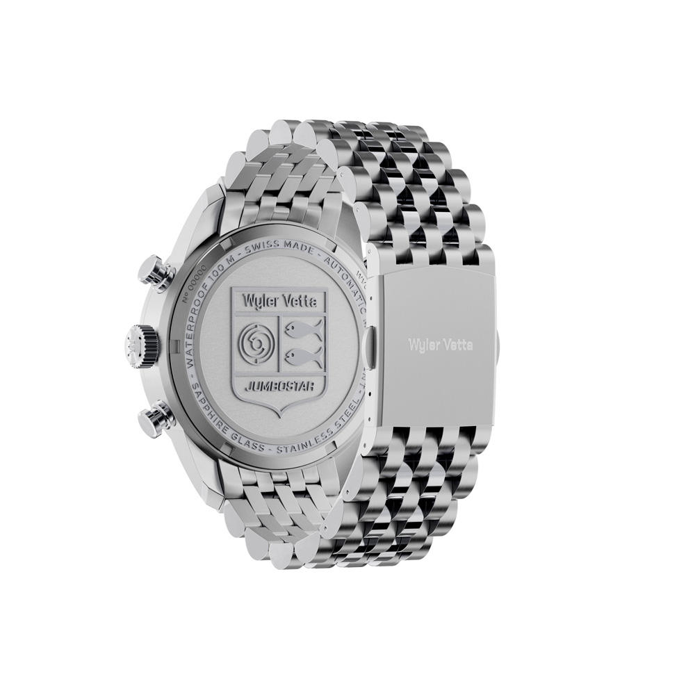 Ispirato alla versione italiana dell’iconico cronografo Jumbostar del 1968, con il caratteristico ribassamento del quadrante color crema con tacche poste in corrispondenza delle ore 12 in color rosso acceso. La seconda corona, posta a ore 10, aziona la ghiera interna girevole conta minuti. La versione 2024, 40mm, monta un movimento automatico calibro ETA 2894, misura soli 12,6mm di spessore, vetro zaffiro bombato incluso. Disponibile sia con bracciale acciaio che con cinturino in cuoio anticato.