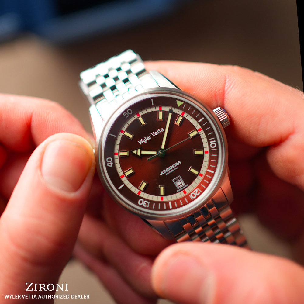 Di tutta la collezione Wyler Vetta, questo modello è indubbiamente il più sportivo e il più versatile. Già negli anni Sessanta, le Forze Armate e i Guardia Coste americani indossavano questo orologio grazie alla sua eccellente impermeabilità e alla sua grande visibilità in condizioni di poca luce. La collezione attuale riprende i quadranti dell’epoca, con arabe e indici luminescenti e si adatta perfettamente alle svariate personalizzazioni.