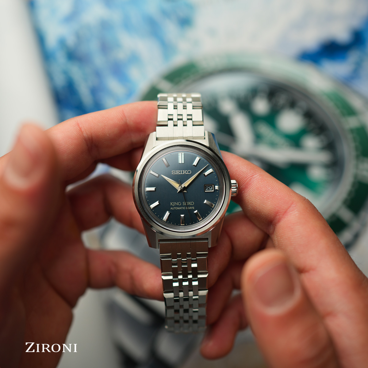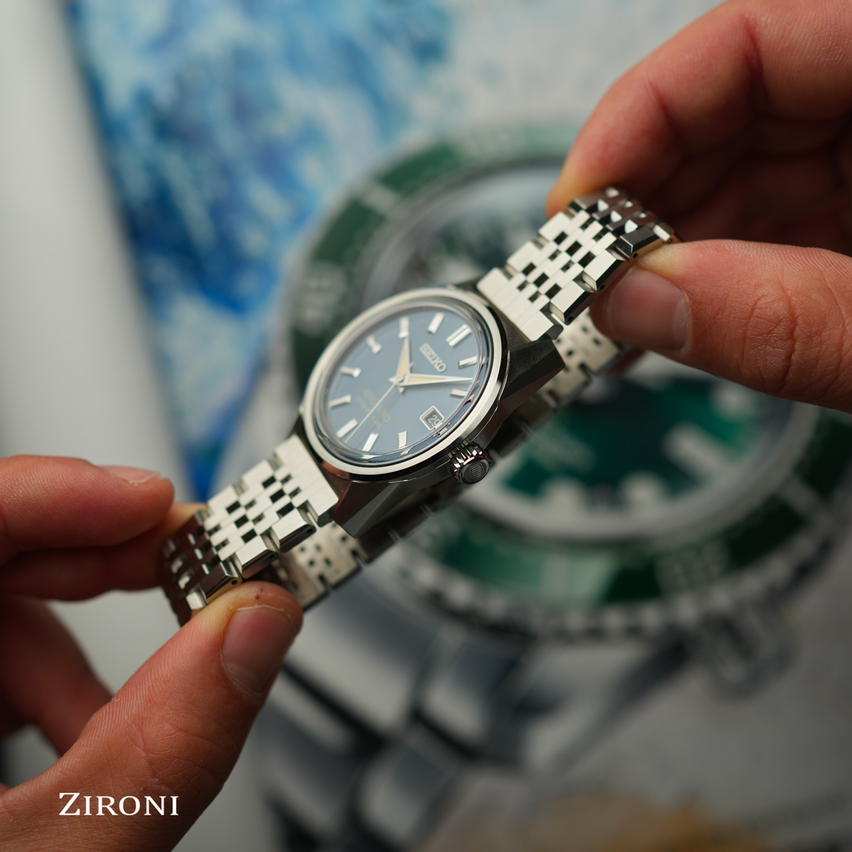 Il KING SEIKO SPB389J1 presenta una nuova forma delle anse, che consente una maggiore versatilità nell'adattamento dei bracciali. Il quadrante presenta finiture verticali spazzolate ispirate alla cultura "Pop" di Tokyo degli anni 1975. Questo modello è dotato del nuovo calibro 6R55 con riserva di carica di 72 ore.
