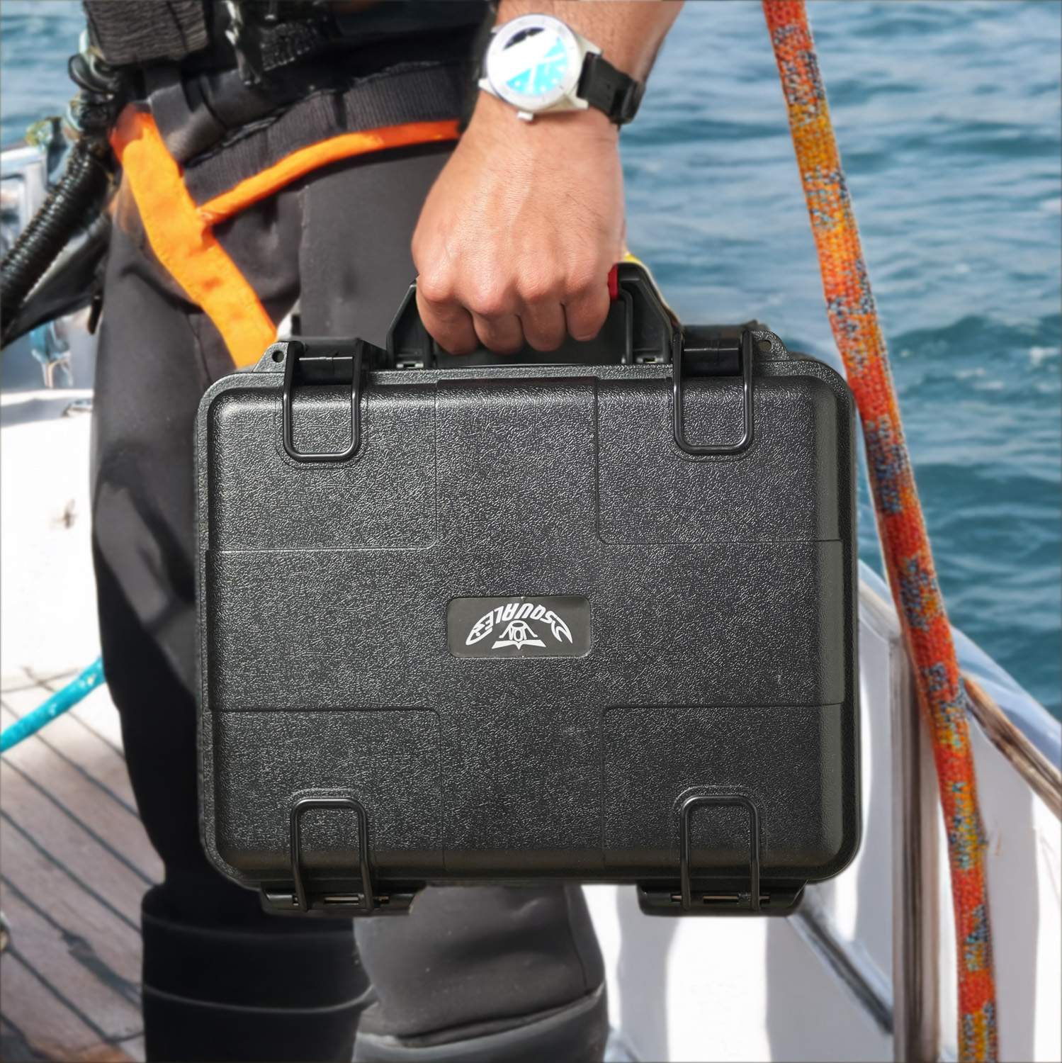 Scopri la confezione esclusiva: una scatola a tenuta stagna, utilizzata dai sommozzatori professionisti per proteggere l’attrezzatura durante le immersioni più estreme.