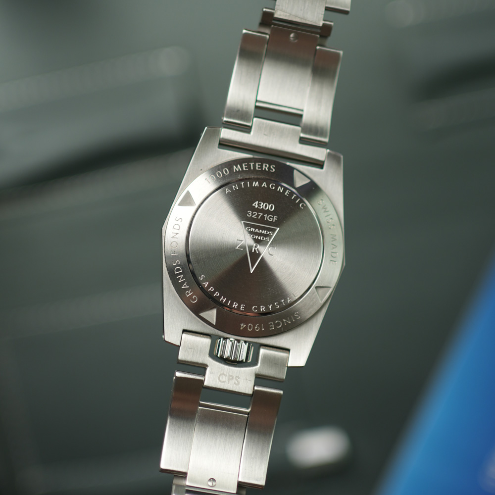 Lo ZRC Grands Fonds combina comfort ed estetica tradizionale con affidabilità tecnica senza compromessi. Con l’aspetto contemporaneo dell’originale Grands Fonds 300®, questa variante dotata di un cinturino in metallo porta tutti gli attributi di un orologio subacqueo.