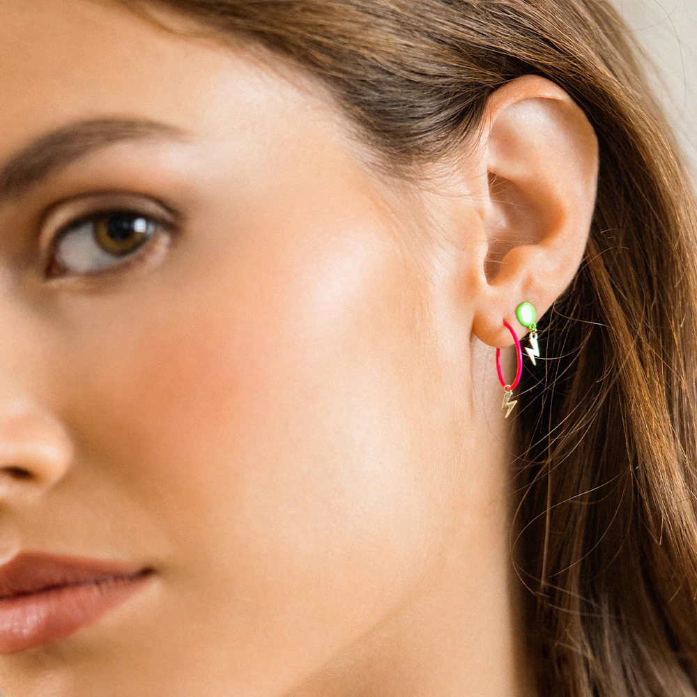 Orecchino singolo con soggetto realizzato in oro 18 KT e rifinito a mano con mini cerchio verniciato su base argento925. L'orecchino è indossabile a lobo o come piercing helix