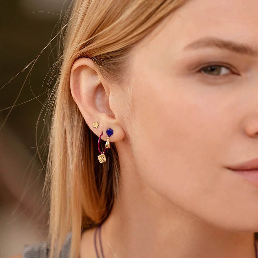 Orecchino singolo con soggetto realizzato in oro 18 KT e rifinito a mano con bottone a lobo verniciato su base argento925