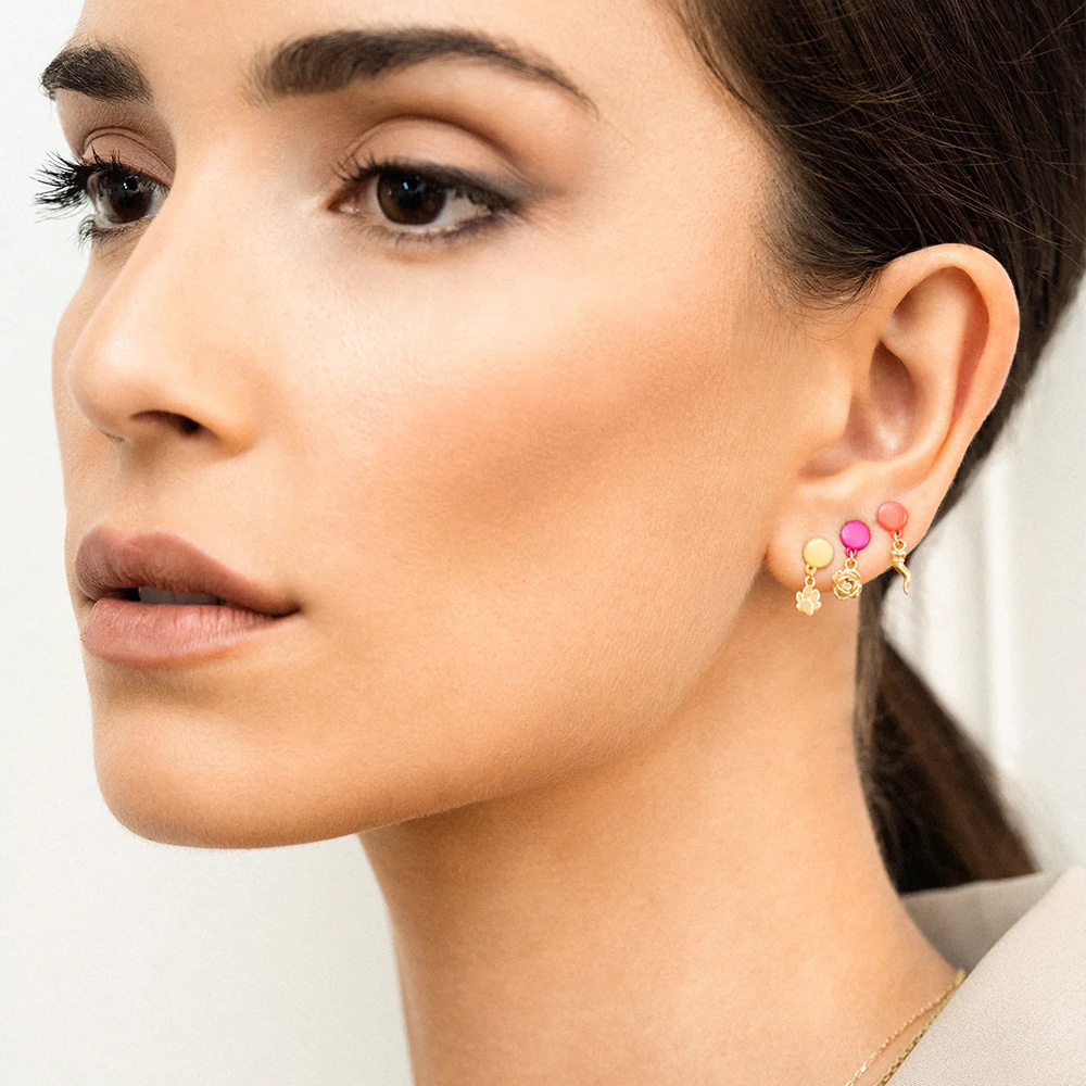 Orecchino singolo con soggetto realizzato in oro 18 KT e rifinito a mano con bottone a lobo verniciato su base argento925