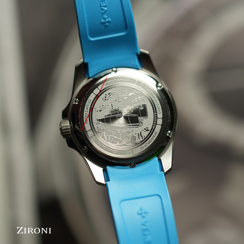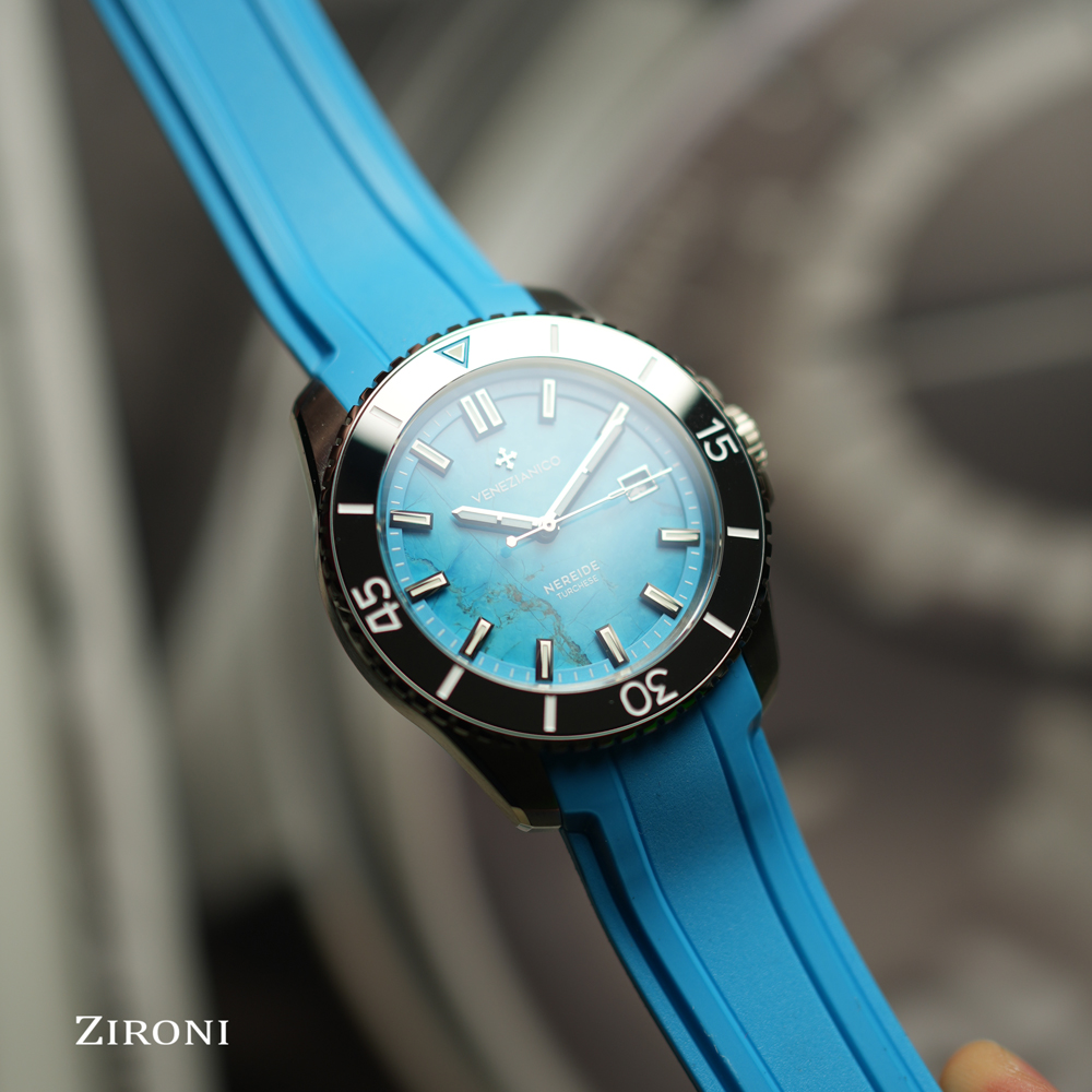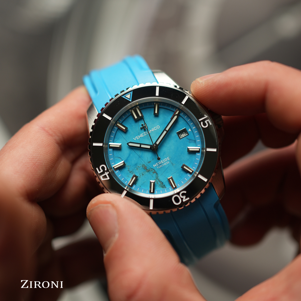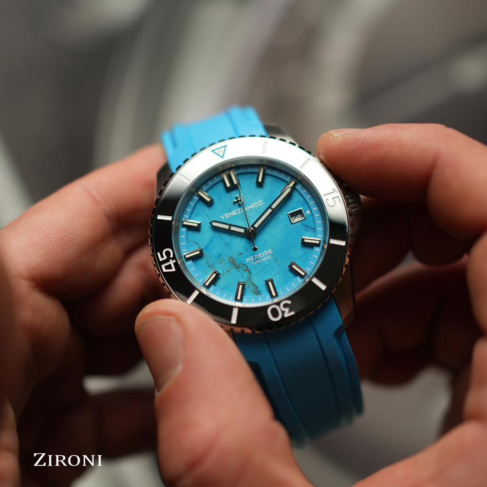 Nereide Ametista coniuga la ricca tradizione artigianale veneziana con la sperimentazione di materiali contemporanei. Oltre al prezioso quadrante, si contraddistingue per l'utilizzo di una lunetta in tungsteno, metallo inscalfibile noto per le sue eccellenti proprietà meccaniche e la sua durabilità.