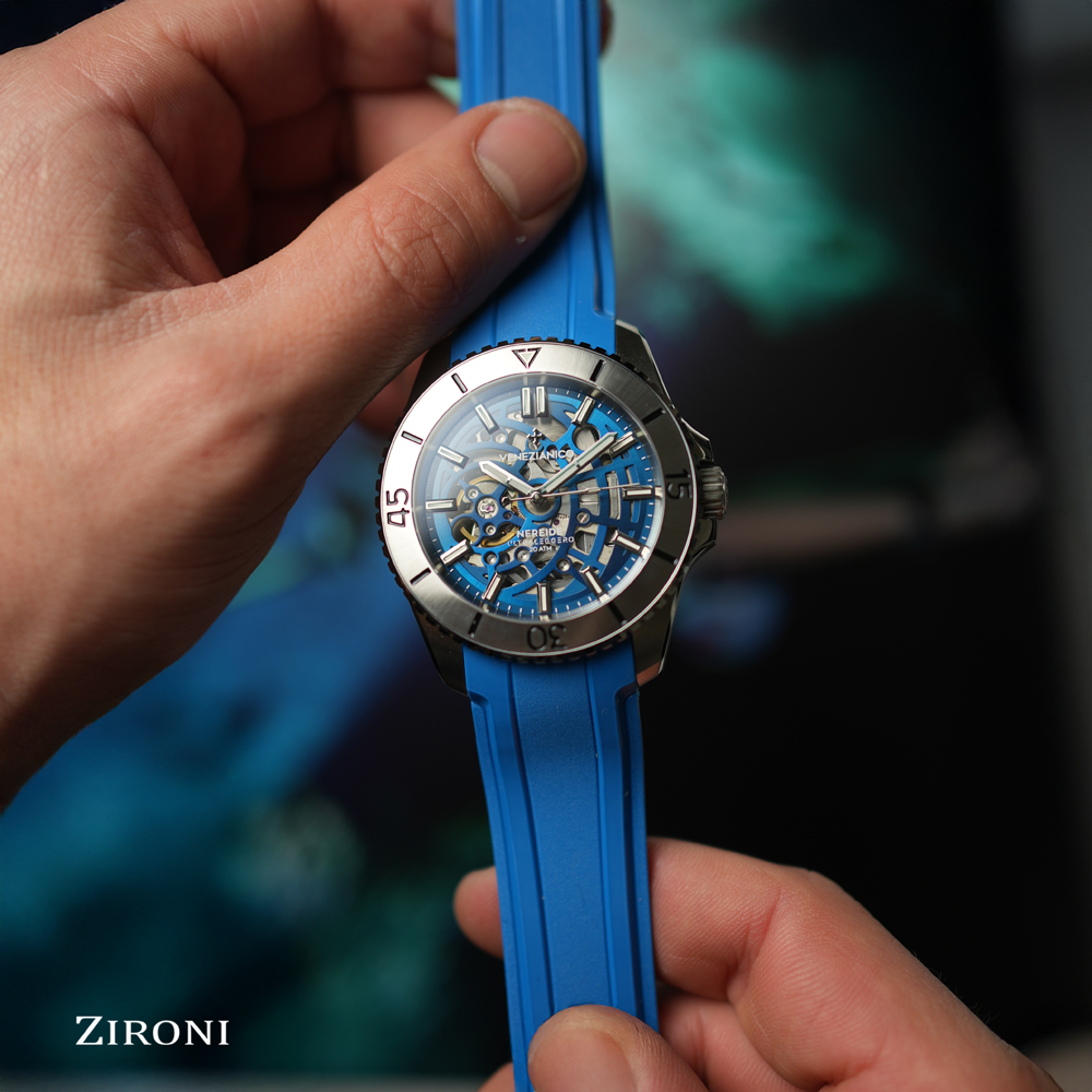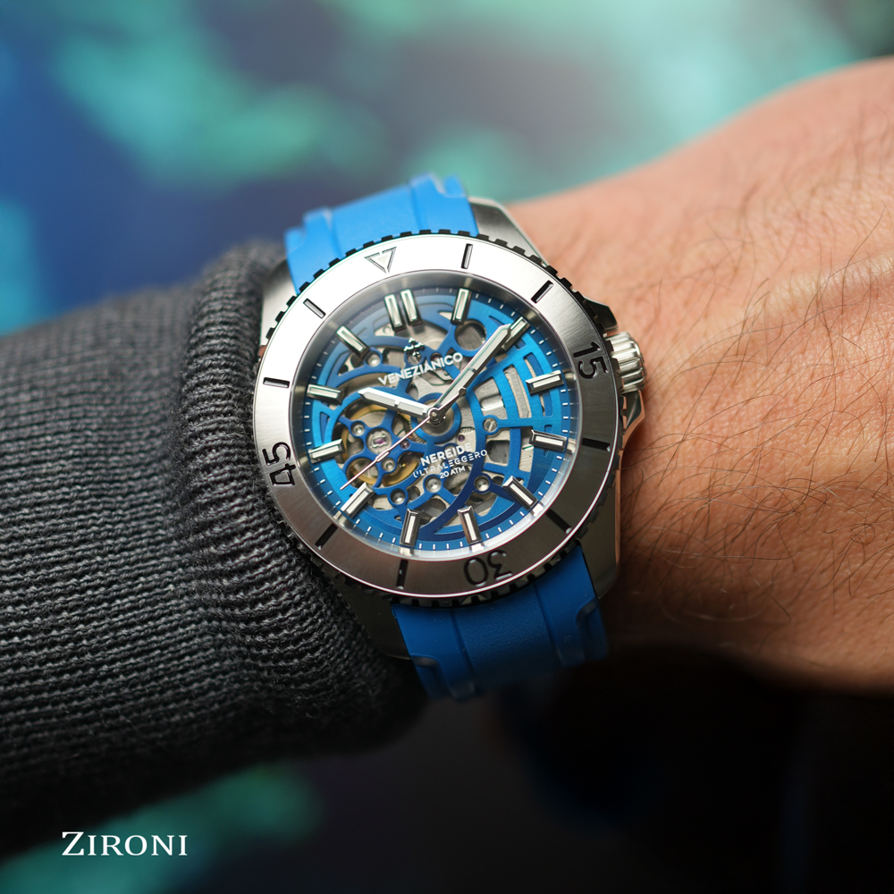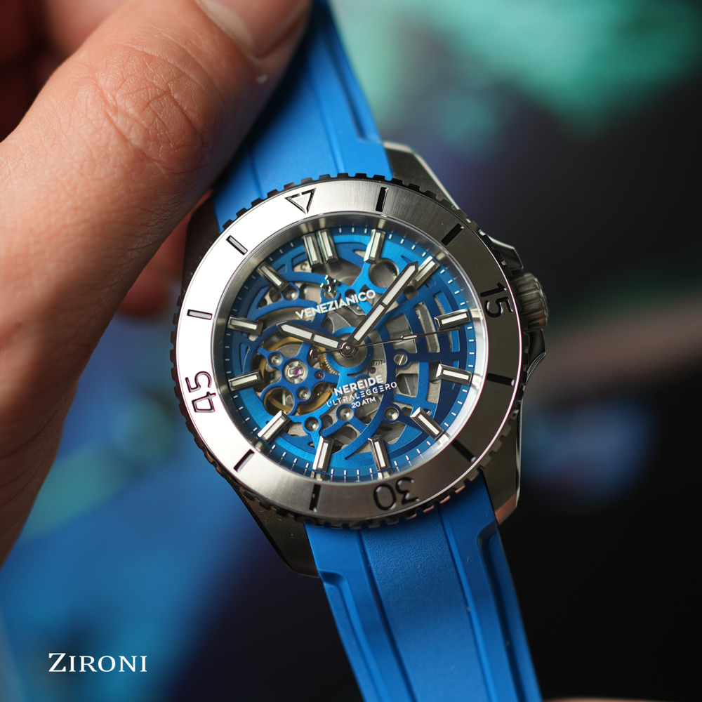Ultraleggero è l’orologio più innovativo della serie Nereide e si ispira all’Uomo Vitruviano, simbolo del Rinascimento e della fine della contrapposizione tra arte e scienza. La singolare geometria del quadrante scheletrato si integra perfettamente con il corpo del movimento, attraverso un’originale soluzione costruttiva brevettata che consente maggior leggerezza e minore ingombro.