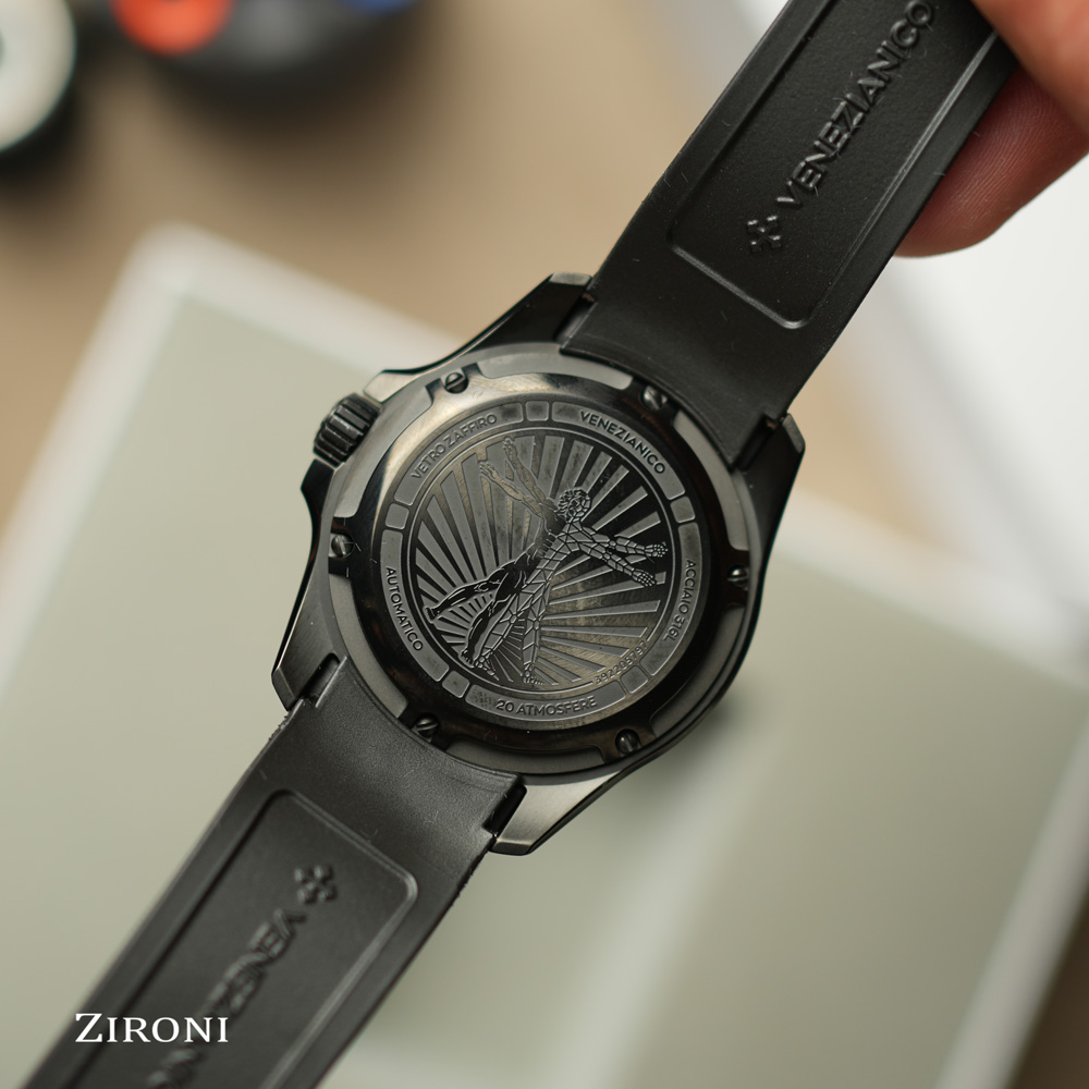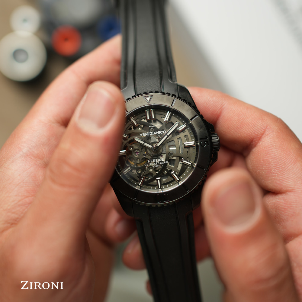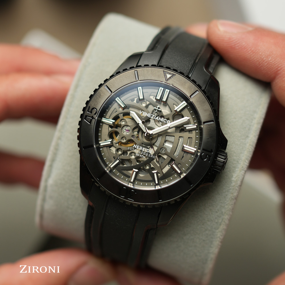Ultraleggero è l’orologio più innovativo della serie Nereide e si ispira all’Uomo Vitruviano, simbolo del Rinascimento e della fine della contrapposizione tra arte e scienza. La singolare geometria del quadrante scheletrato si integra perfettamente con il corpo del movimento, attraverso un’originale soluzione costruttiva brevettata che consente maggior leggerezza e minore ingombro.