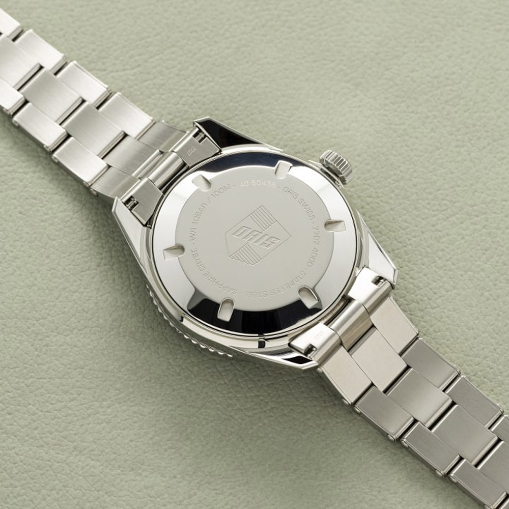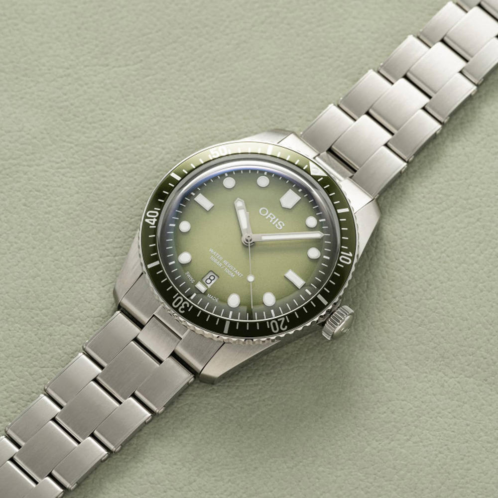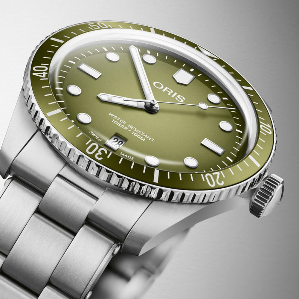Questo Divers Sixty-Five si ispira alle tonalità color verde naturale delle foreste che circondano la nostra casa di Hölstein, in piena valle di Waldenburg. Il quadrante verde sfumato è racchiuso in una cassa in acciaio del diametro di 40mm dotata di bracciale in metallo a tre file di maglie.