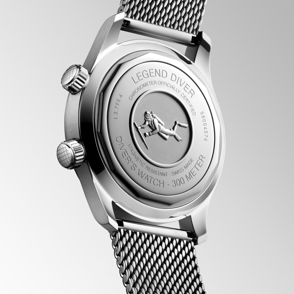 Originariamente progettato per l’esplorazione subacquea, il Longines Legend Diver si trova a suo agio sia sulla terraferma che sott’acqua.