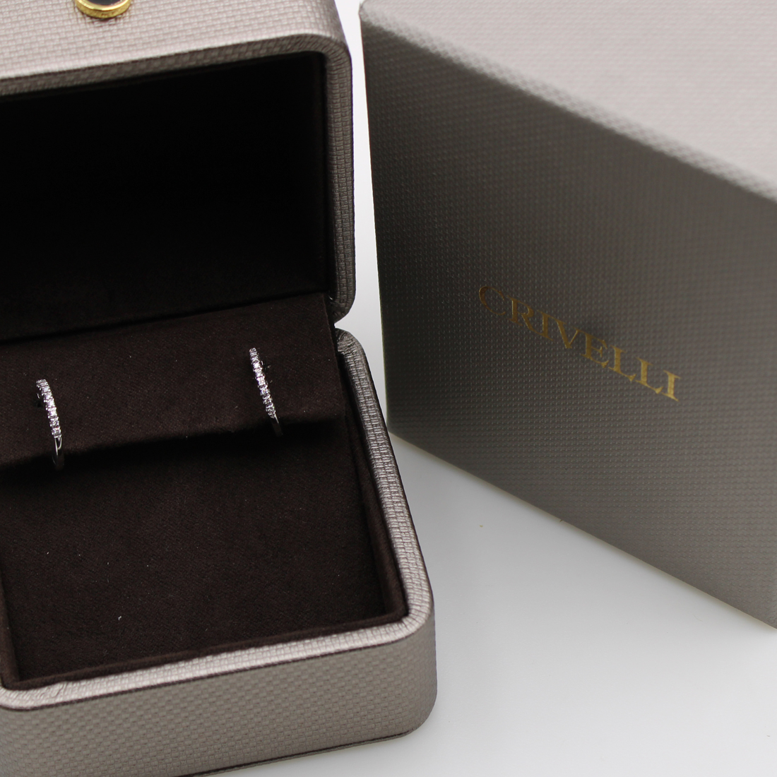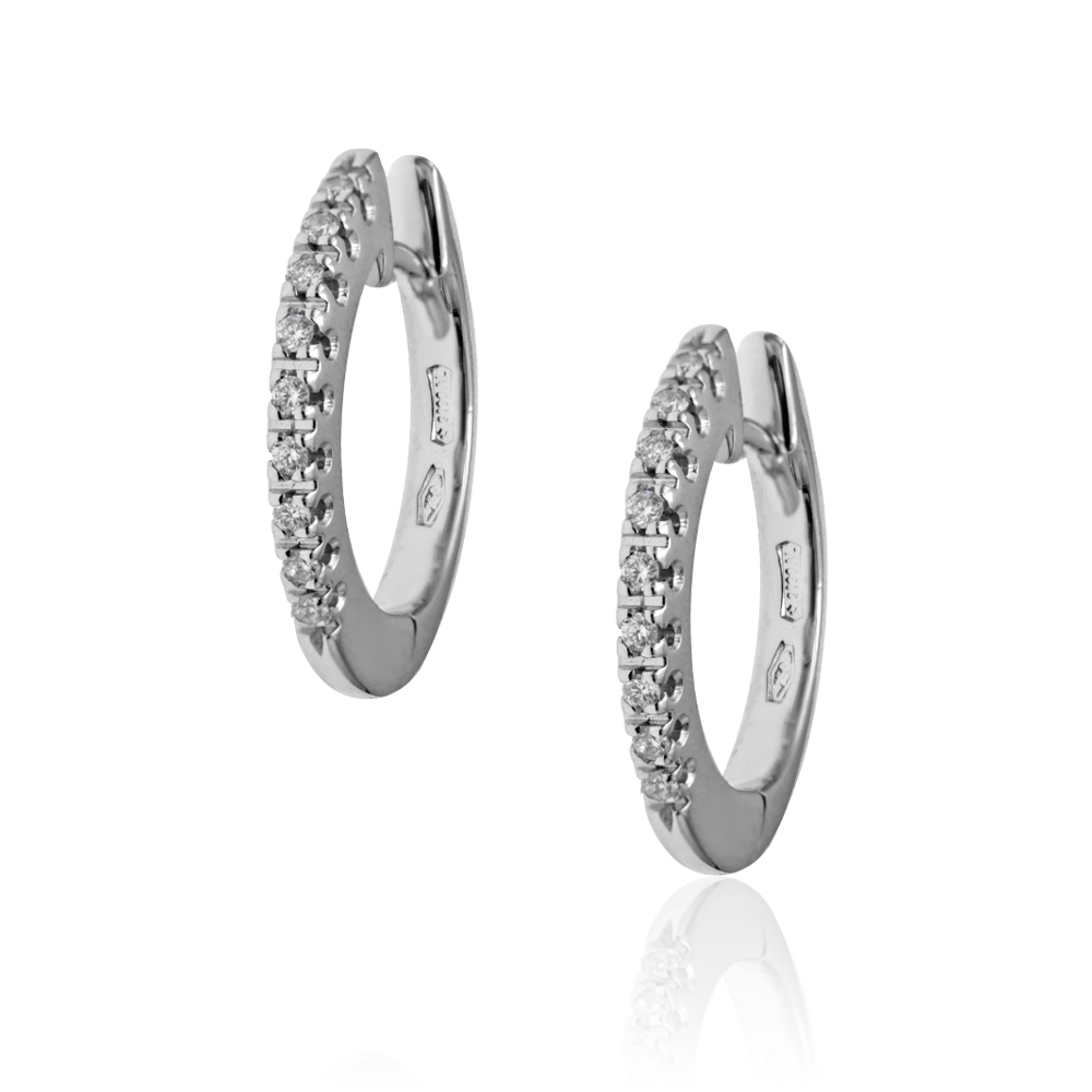 Orecchini a cerchio in oro bianco 18K con 18 diamanti taglio brillante (ct 0,10 - G - VS) - diametro 16 mm