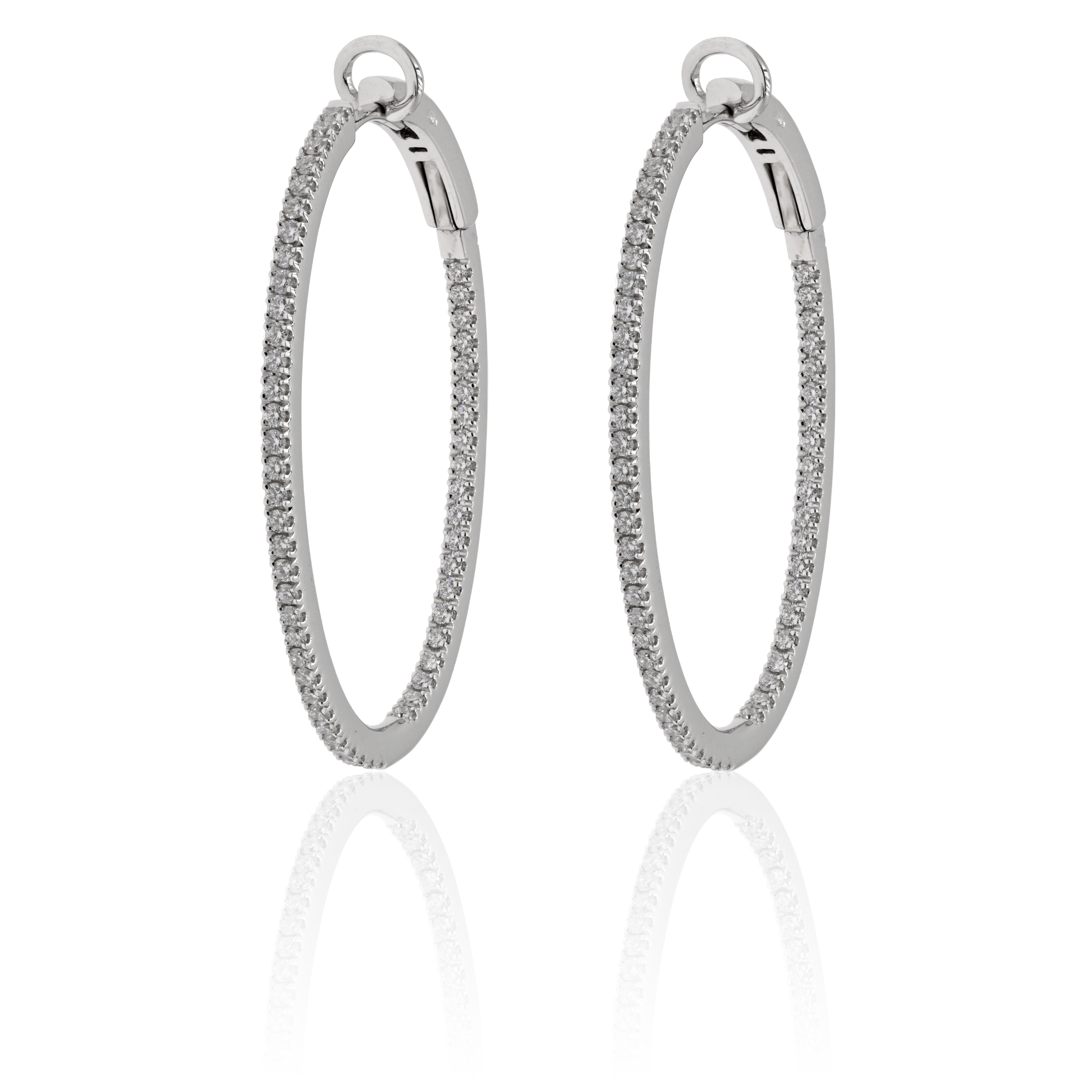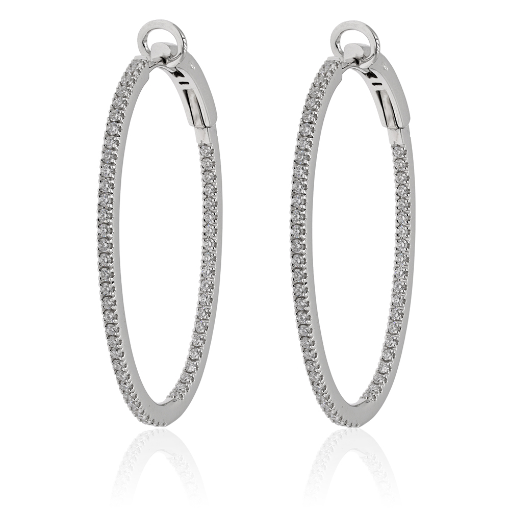 Anelle ovali in oro bianco 18K incassate internamente ed esternamente con 106 diamanti taglio brillante (ct.0.86 - F - SI) - 25 x 37 mm