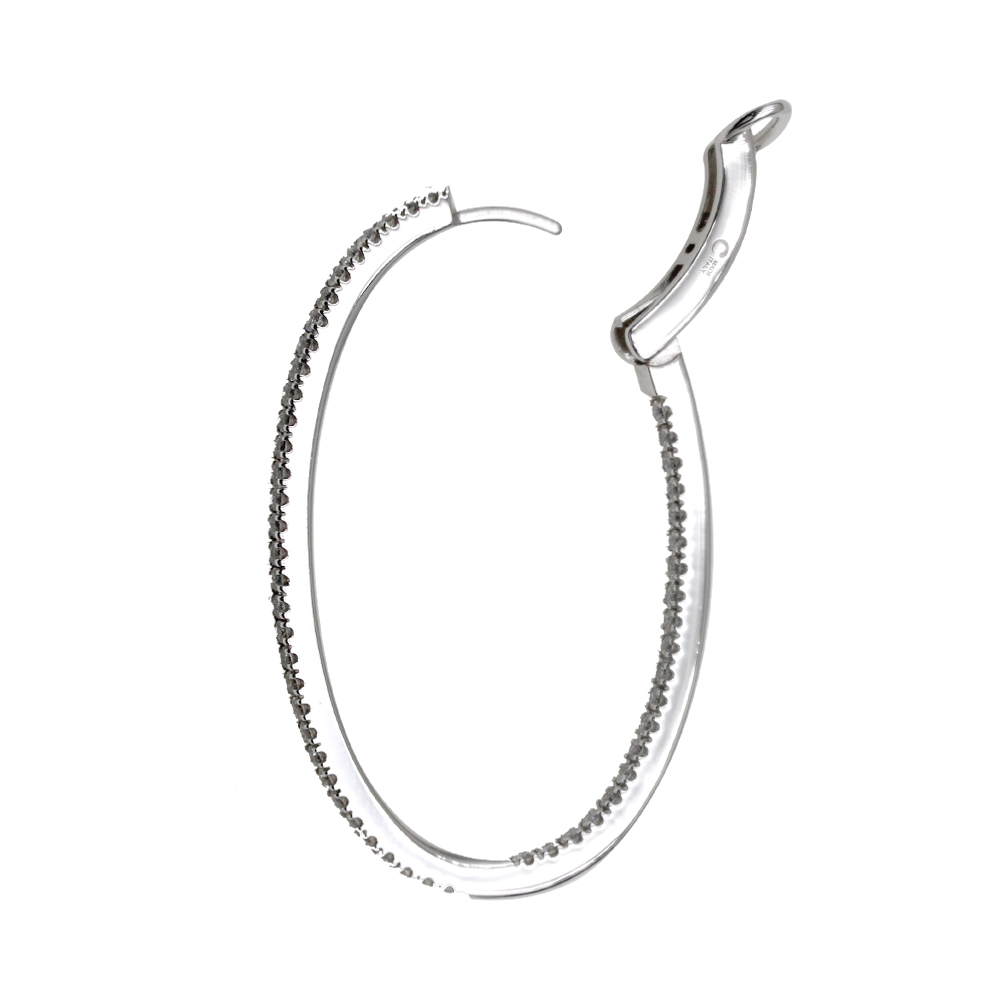 Orecchini a cerchio ovali in oro bianco con diamanti (ct 0.86) - 25 x 37 mm